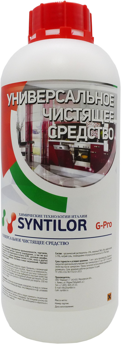 Универсальное чистящее средство для качественного очищения полов, стен, окон, дверей и других поверхностей от масляно-жировых, белковых, пигментных, бытовых и иных загрязнений на промышленных и торговых предприятиях, в организациях общественного питания, гостиницах и в быту. Позволяет очистить помещение и удалить неприятные запахи всего за 10-15 минут. Рецептура средства включает в себе компоненты, позволяющие эффективно справляться с грязью, не нанося вреда водостойким поверхностям и технологическому оборудованию. Универсальный очиститель также можно применять для ухода за транспортными средствами.