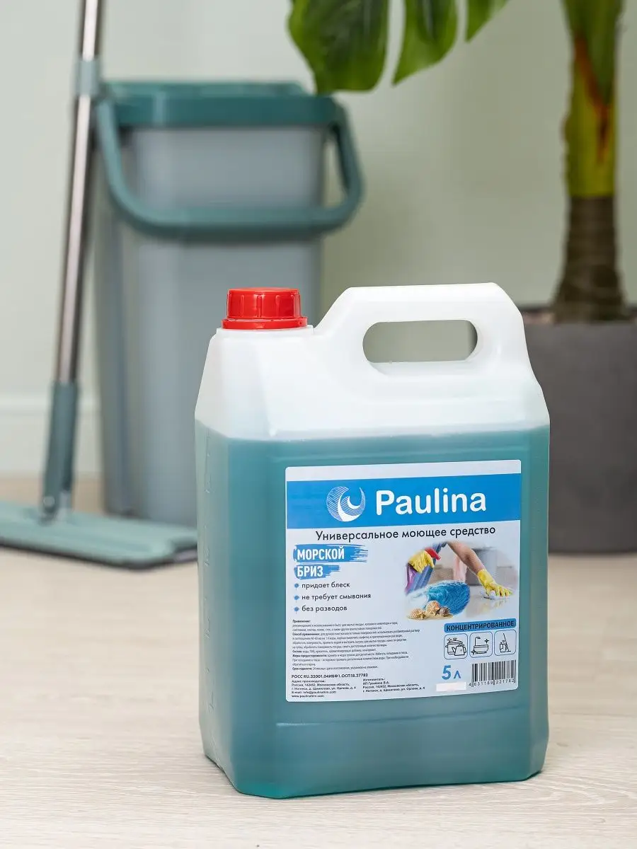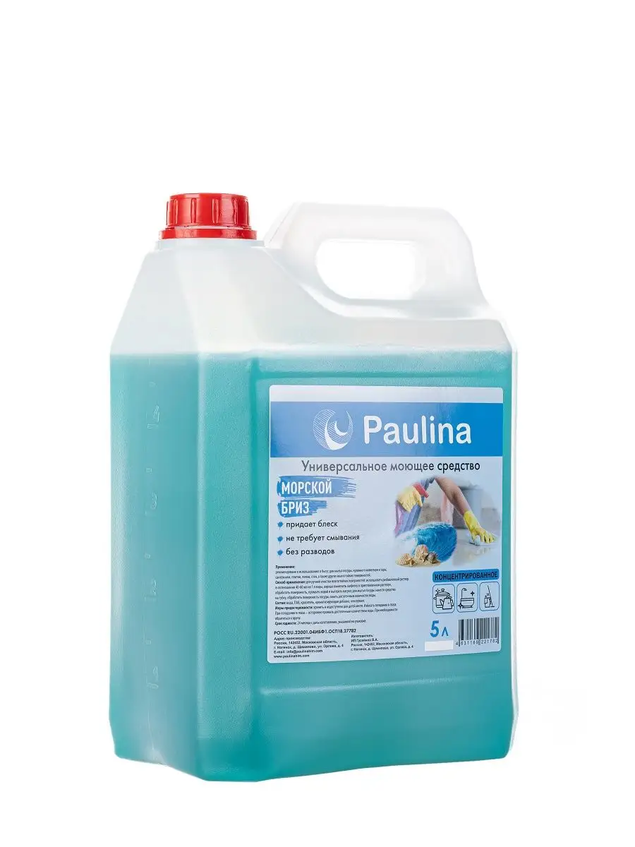Описание: Добро пожаловать в мир бытовой химии компании "Paulina". Наше универсальное моющее средство Paulina — это высококачественный товар, с использованием только сертифицированных компонентов, не вызывает раздражение и не сушит кожу рук благодаря натуральным компонентам, хорошо пенится (даже в холодной воде), не оставляет следов и налета. Страна производства - Россия. Универсальное моющее средство для всех видов поверхностей Paulina с ароматом морского бриза, отлично пенится, убирает всю грязь и жир с любой поверхности, убирает налет и не оставляет разводов. Универсальное моющее средство отлично подходит как средство для мытья посуды 5 литров, чистки и обезжиривания различных твердых поверхностей: посуды, предметов интерьера, поверхностей ванной комнаты и туалета, унитаза, раковины, уборка производственного оборудования, стен, полов, окон и любых других поверхностей. Из-за хорошего свойства пенообразования и большого объема универсальное моющее средство в канистре, составляющий 5000 мл, позволит Вам наслаждаться его использованием на протяжении длительного времени. Универсальное моющее средство 5 литров в канистре Paulina состоит на 99 процентов из натуральных компонентов и добавок. Наше универсальное моющее средство с ароматом морской волны эффективно убирает жир, следы налета и грязи с посуды, и другой кухонной утвари, подходит для мытья полов (для любых поверхностей керамические плиты, ламинат, линолеум и т.д.), ванной и туалетной комнаты. Благодаря удобной упаковке в виде пятилитровой канистры, универсальное моющее средство Paulina будет практичным и удобным выбором для семейного использования. Благодарим за выбор бытовой химии торговой марки Paulina!