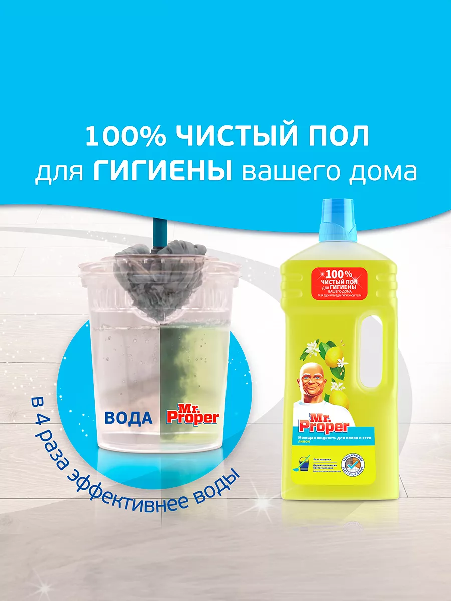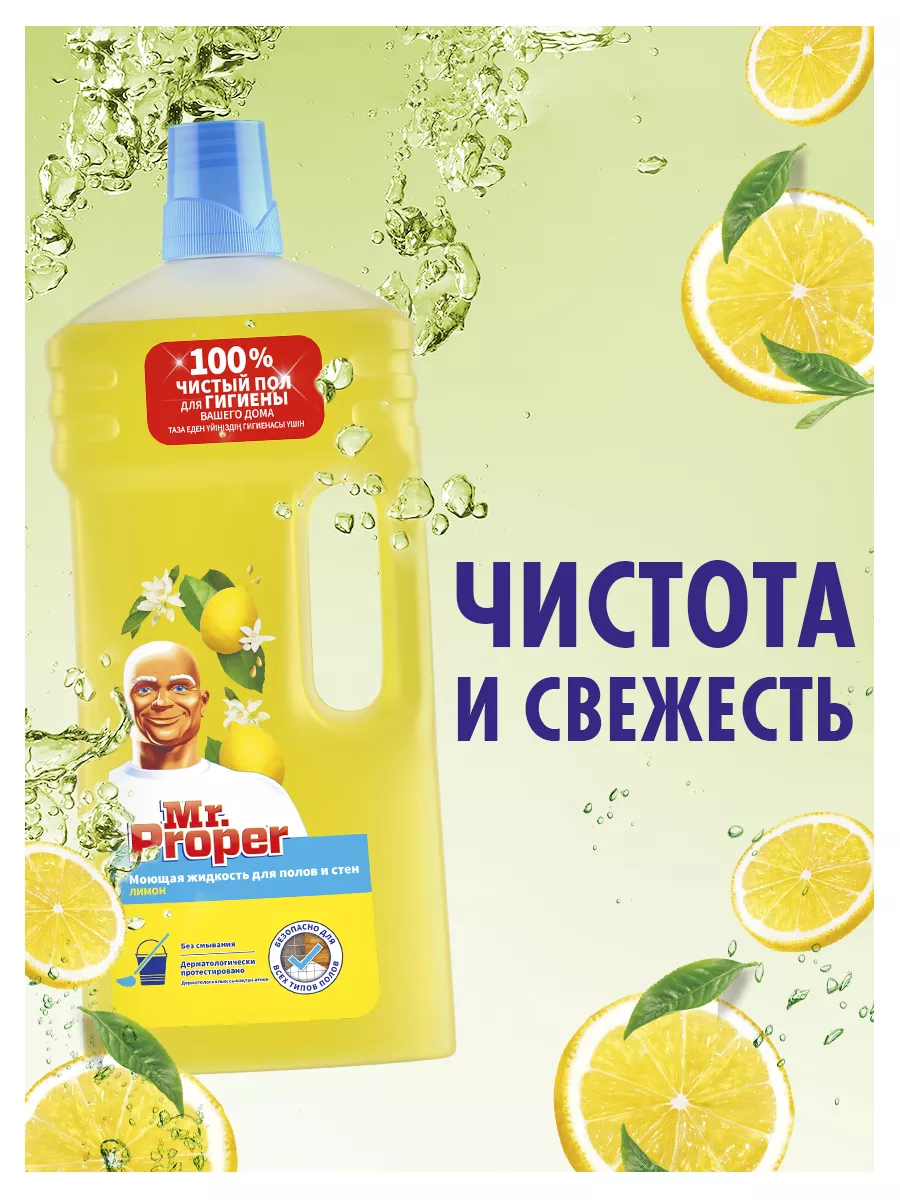 Описание: Сделайте дом чистым с универсальным моющим средством Mr. Proper. Средство подходит не только для мытья пола, но и для стен, корпусной мебели. Жидкость без труда очищает кафель, ламинат, линолеум и другие твердые поверхности, не оставляя разводов.Особенности моющего средства "Мистер Пропер":- УНИВЕРСАЛЬНОСТЬ. Подходит для уборки кухни, гостиной, ванной и других помещений в доме.- УДОБСТВО ИСПОЛЬЗОВАНИЯ. Удаляет до 100% загрязнений и неприятные запахи, не требует смывания.- НЕ ВРЕДИТ ПОКРЫТИЯМ. Подходит для всех типов полов. - ДЕРМАТОЛОГИЧЕСКИ ПРОТЕСТИРОВАНО. Формула без агрессивных ПАВ и ароматизаторов.Разведите "Мистер Пропер" для пола в теплой воде и начните уборку. Раствор хорошо удаляет жировые загрязнения, домашнюю пыль, следы от лап животных. Экономичной упаковки объемом 1,5 л хватит на несколько циклов уборки. Срок годности средства - 18 месяцев. Размеры упаковки (Д х Ш х В) - 60 х 129 х 325 мм. Вес составляет 1598 г.