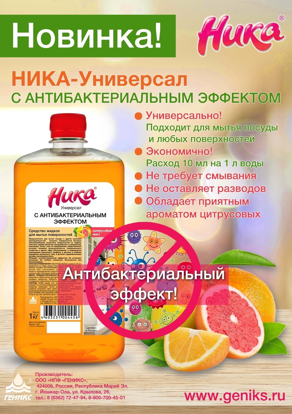 Универсальное моющее средство "Ника-Универсал с антибактериальным эффектом" 1 кг, концентрат