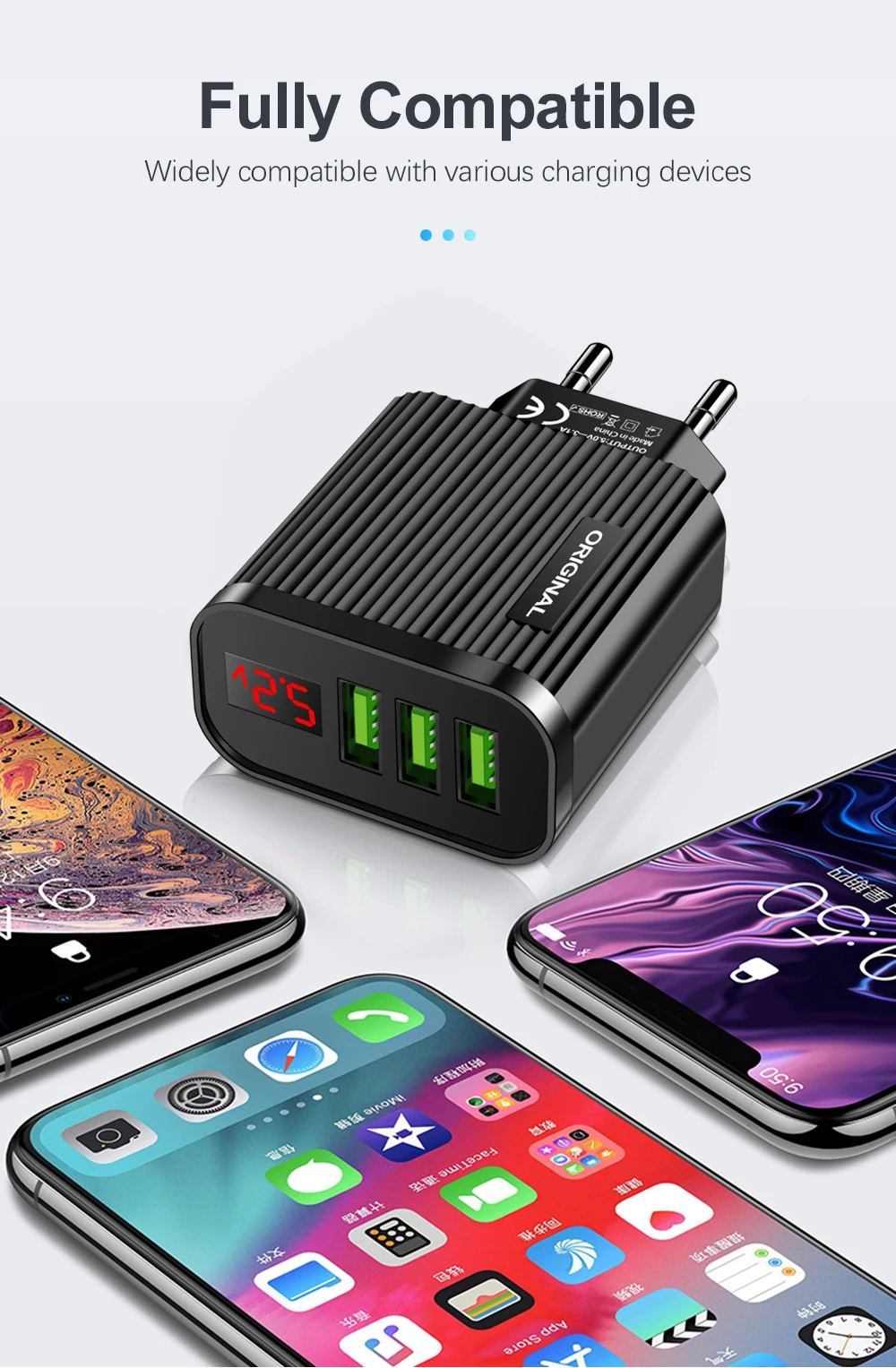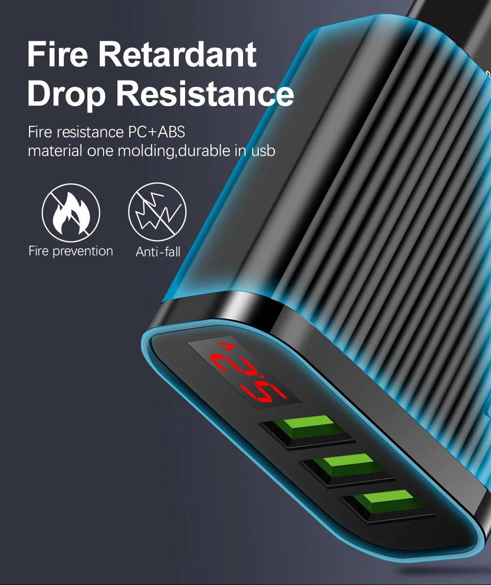 Универсальное зарядное устройство с 3 USB-портами и светодиодной подсветкой