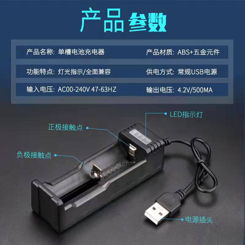 Универсальное зарядное устройство USB с одним разъемом 18650