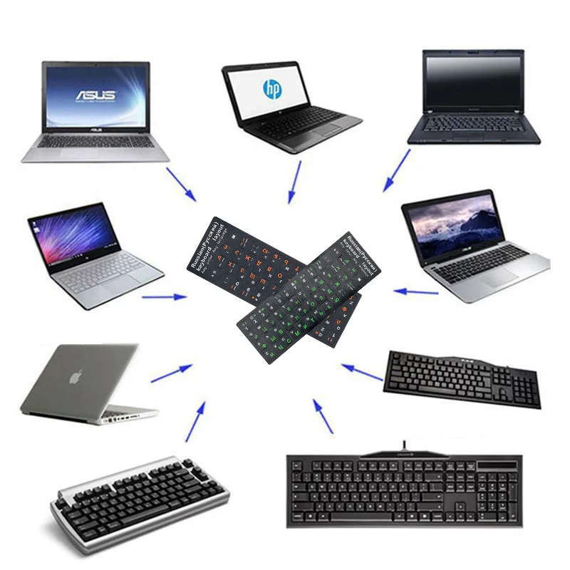 Универсальные наклейки на клавиатуру с русскими буквами для ноутбука, компьютера, настольного компьютера