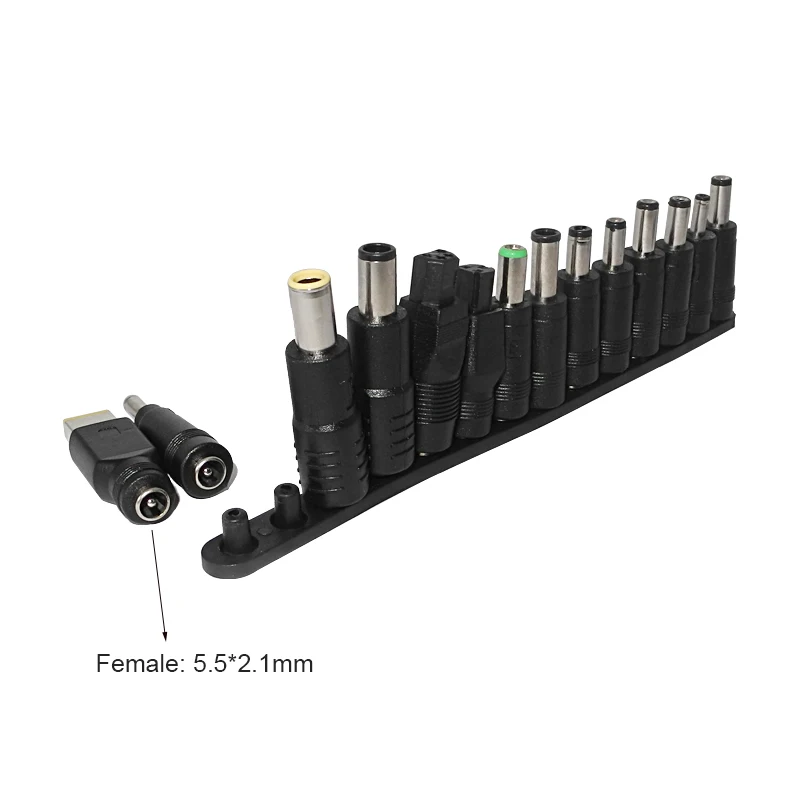 <span class="SnowProductCharacteristics_SnowProductCharacteristicsItem__titleContent__534v9">5.5*2.1mm Female base</span> Each connector tip can plug to a 5.5x2.1mm male connector