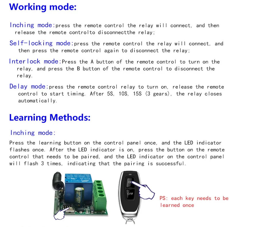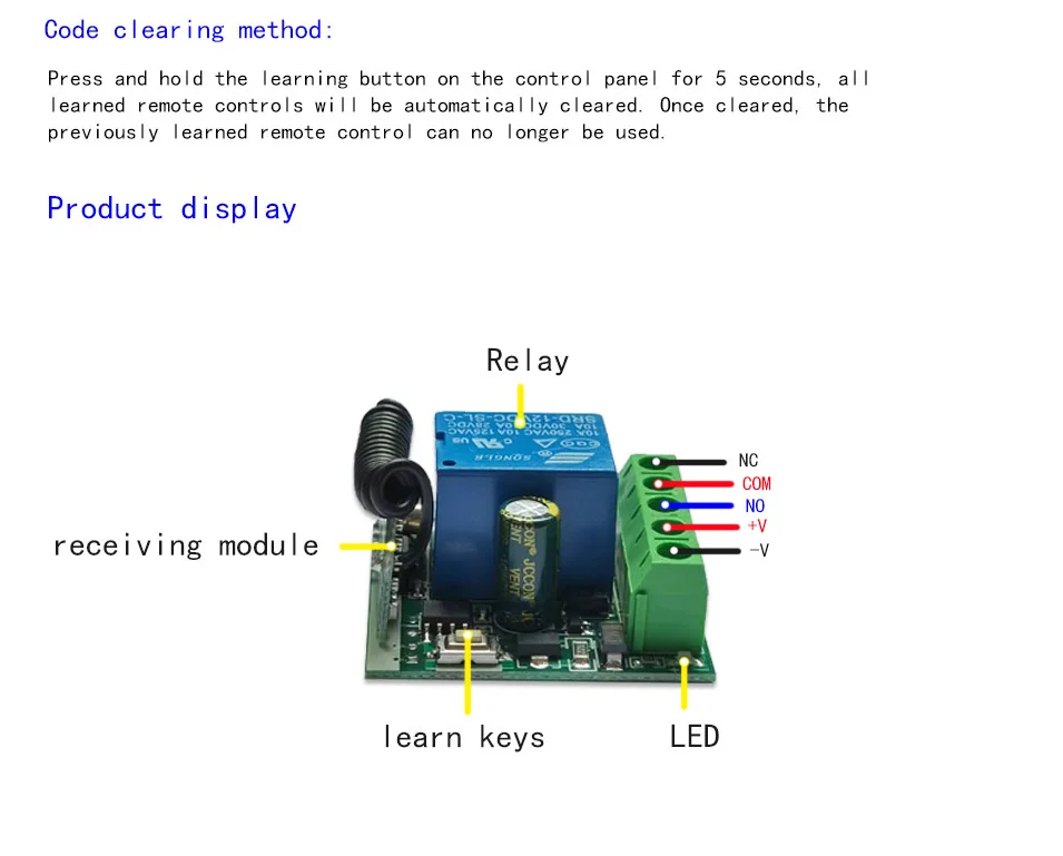 Универсальный беспроводной переключатель 433 МГц, 12 В, 10 А