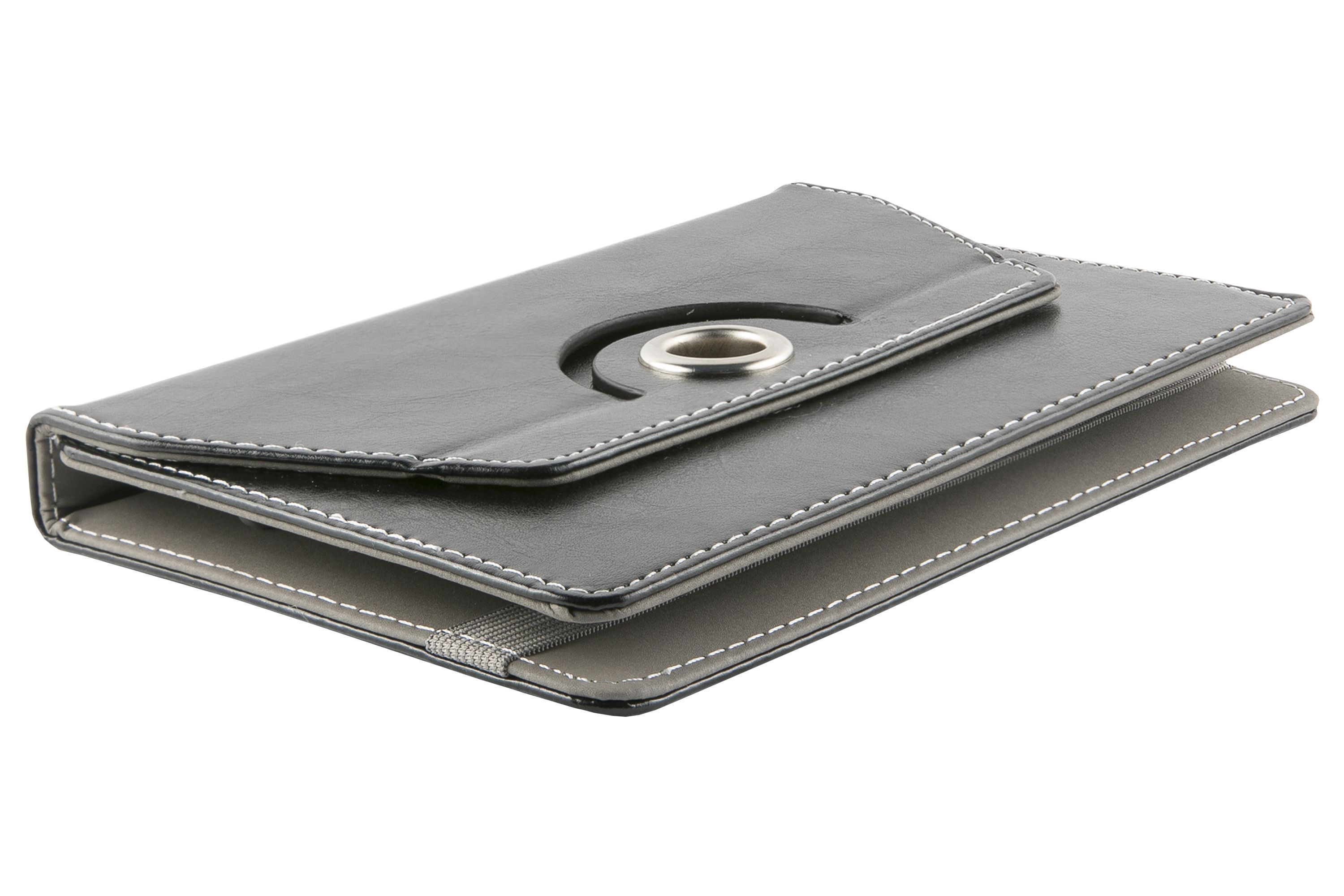 Описание: Универсальный чехол для планшетов до 7 дюймов оснащен поворотным механизмом крышки, что способствует легкой установке планшета в режим подставки для просмотра видео/фото. Чехол выполнен из эко-кожи, с тканевой подложкой внутри, которая обеспечивает мягкую защиту корпуса планшета от пыли и царапин. Крепится планшет к чехлу благодаря угловым крючкам. Максимальный размер планшета к которому подходит чехол: 192х123мм