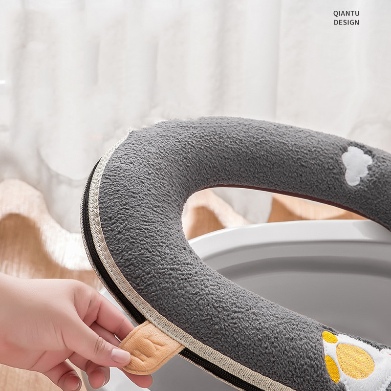 Универсальный чехол на сиденье унитаза, зимний теплый мягкий коврик для унитаза, моющийся съемный чехол на молнии с откидной ручкой, водонепроницаемый бытовой