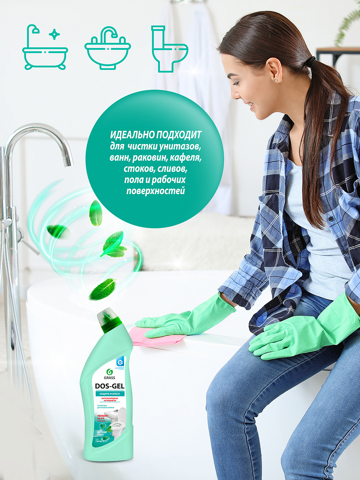 Универсальный чистящий гель "DOS GEL" "Мятная сила" 750мл