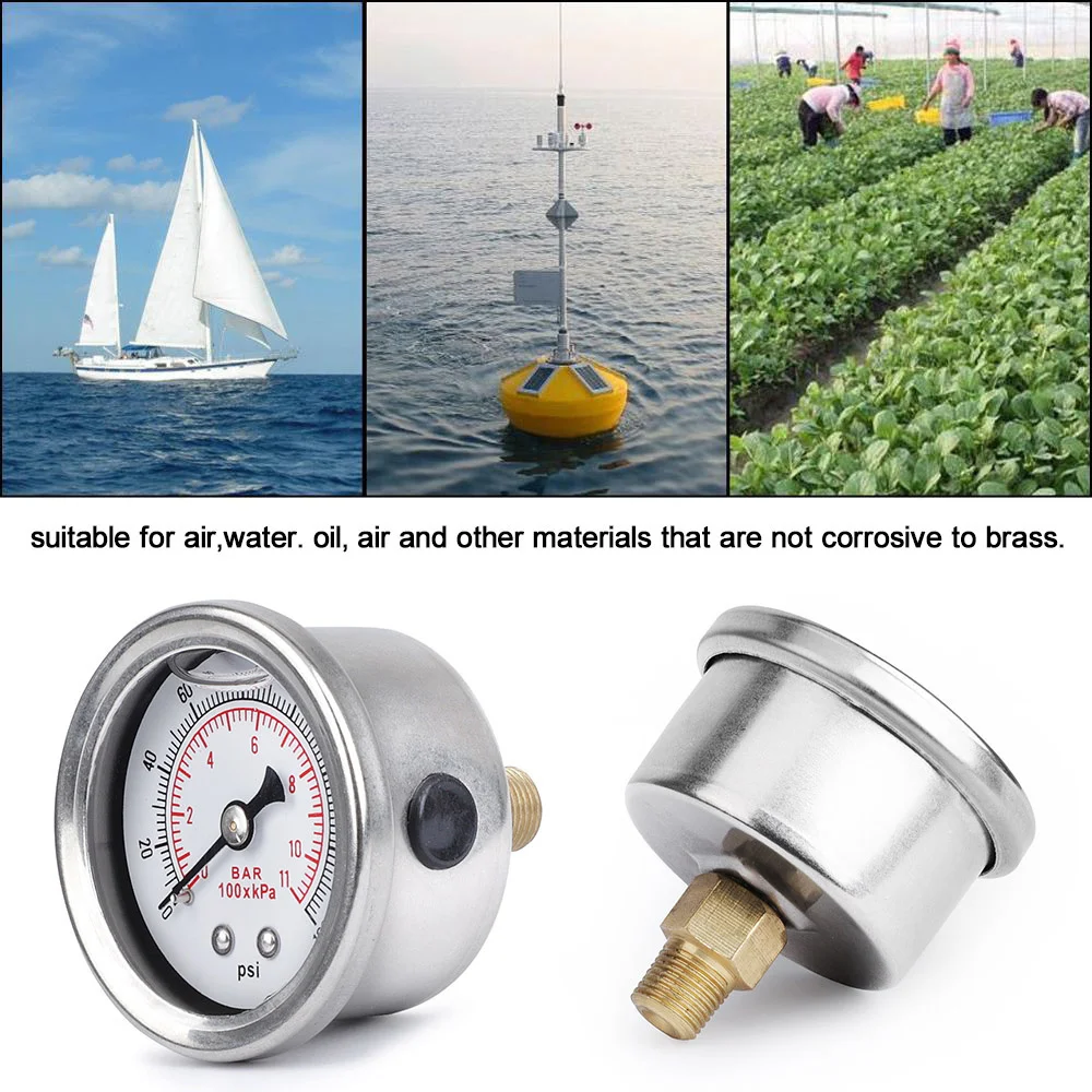 Universal 1/8 Npt Fuel Pressure Gauge Liquid 0-160 Psi 0-11 Kpa Oil Press Meter White Face For Rv Boat Car Racing