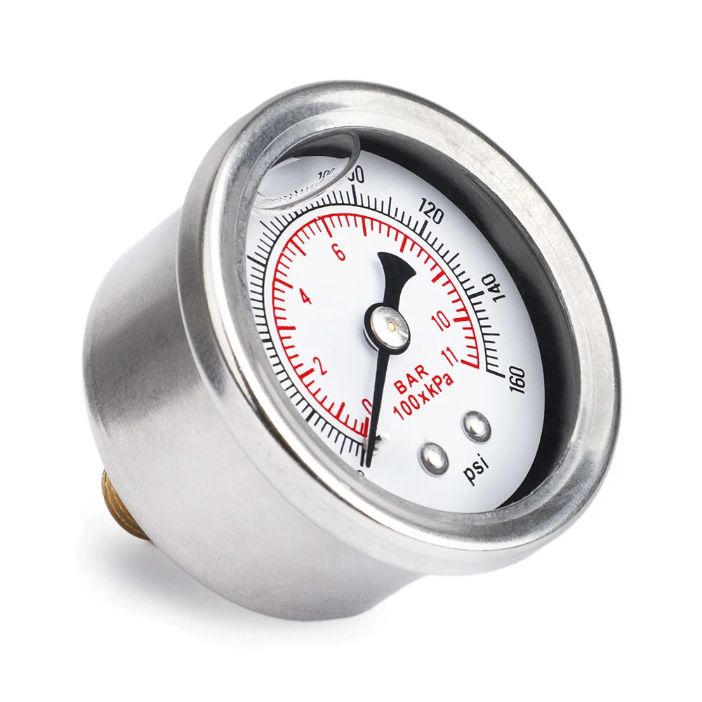 Compact sized  fuel pressure Gauge. Proper fuel pressure is critical for adjusting your carburetor or fuel injection, so don't rely on a poor quality gauge, Get this  direct mount fuel pressure gauge.Liquid FILLED keeps the needle steady, which is extremely critical during engine operation