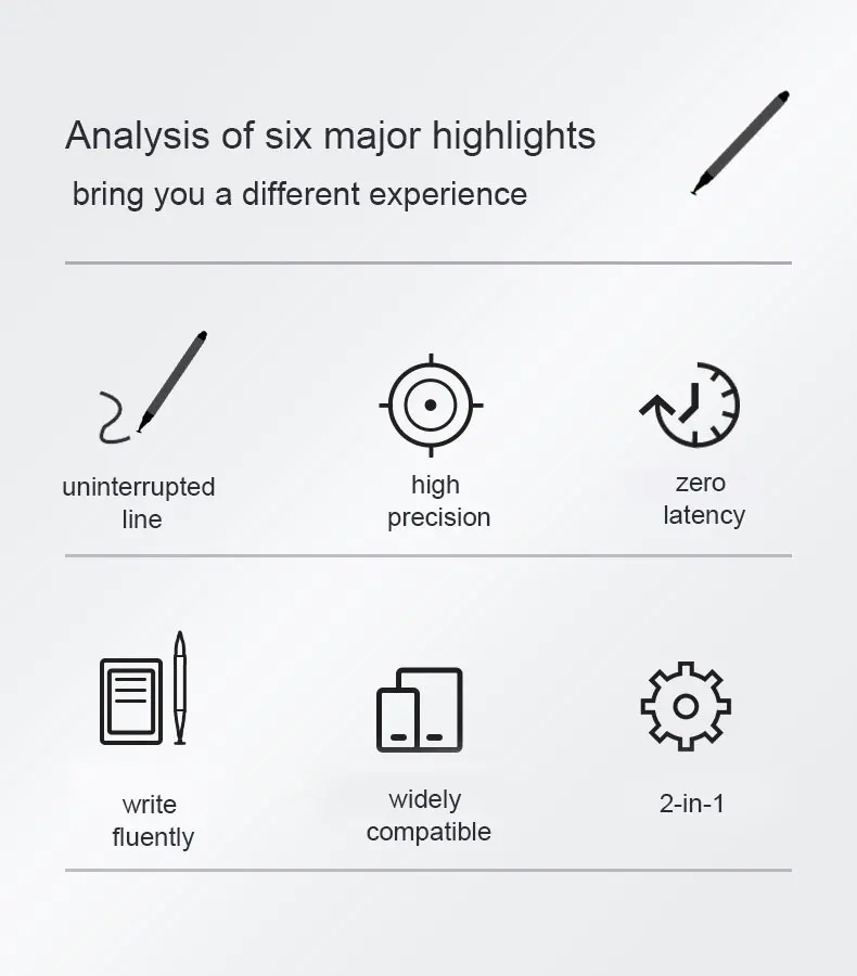 Высокая чувствительность и точность: гибкий угол письма 180 ° для удобного использования. Вы можете получить более плавное письмо или рисование, без задержек, без перерывов, без царапин на экране.