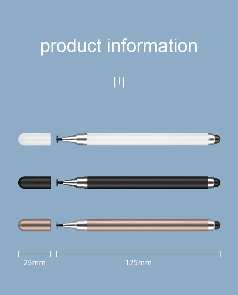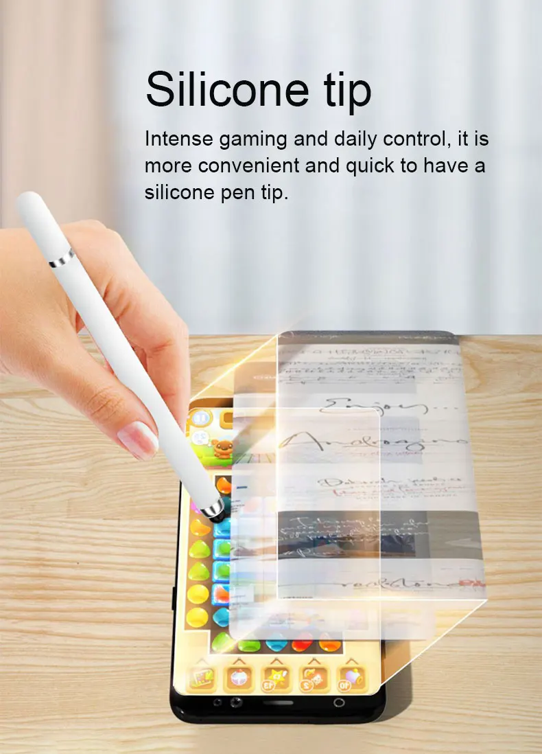 Стилус 2-в-1: точные и чувствительные двойные резиновые наконечники и поставляется с защитным колпачком. Этот стилус 2-в-1 отвечает различным потребностям в вашей повседневной жизни, будь то нажатие значков, письмо, рисование или игры, он может с легкостью справиться со всеми ними.