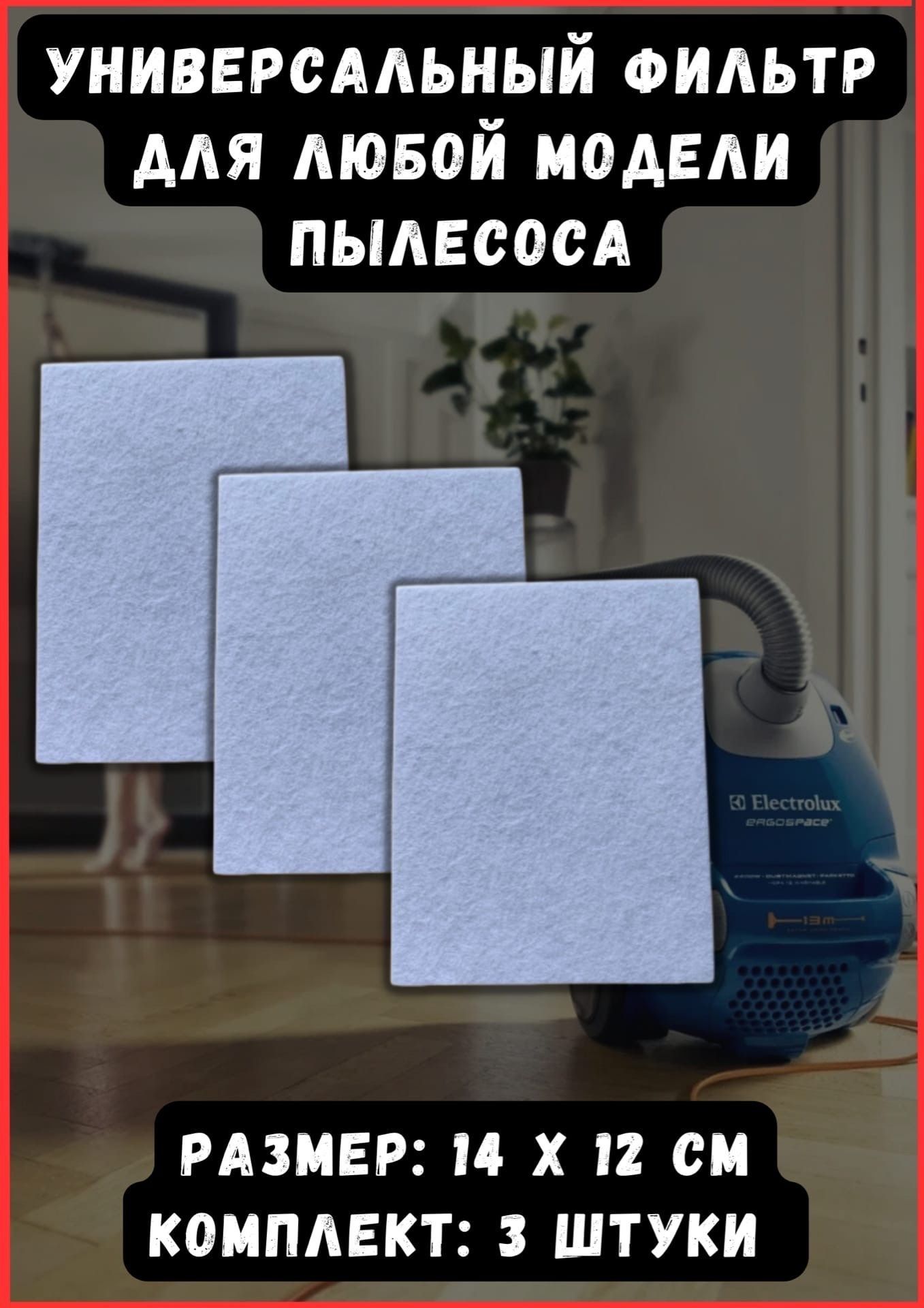 Универсальный фильтр для пылесоса, микрофильтр 14х12 см, 3 шт