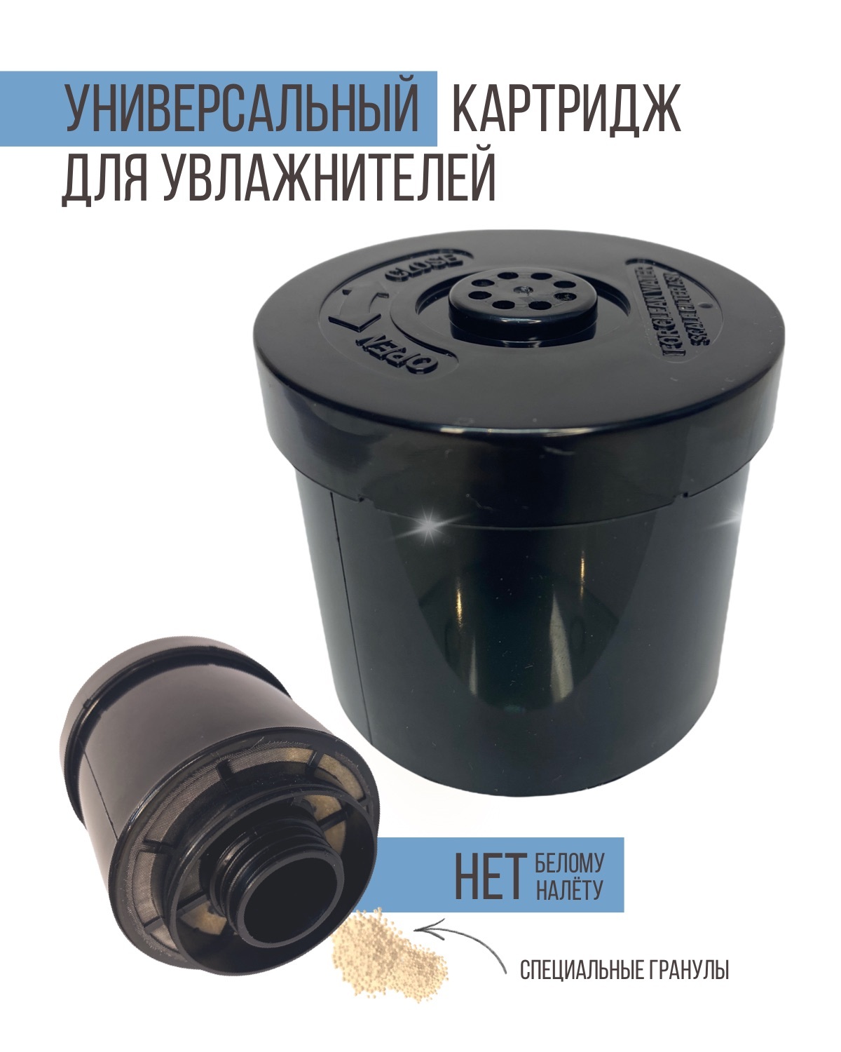 Картридж не разборный, и не имеет возможности замены наполнителя (гранулята). При замене картриджа рекомендуется очистить внутренние детали увлажнителя (включая мембрану) от налета.