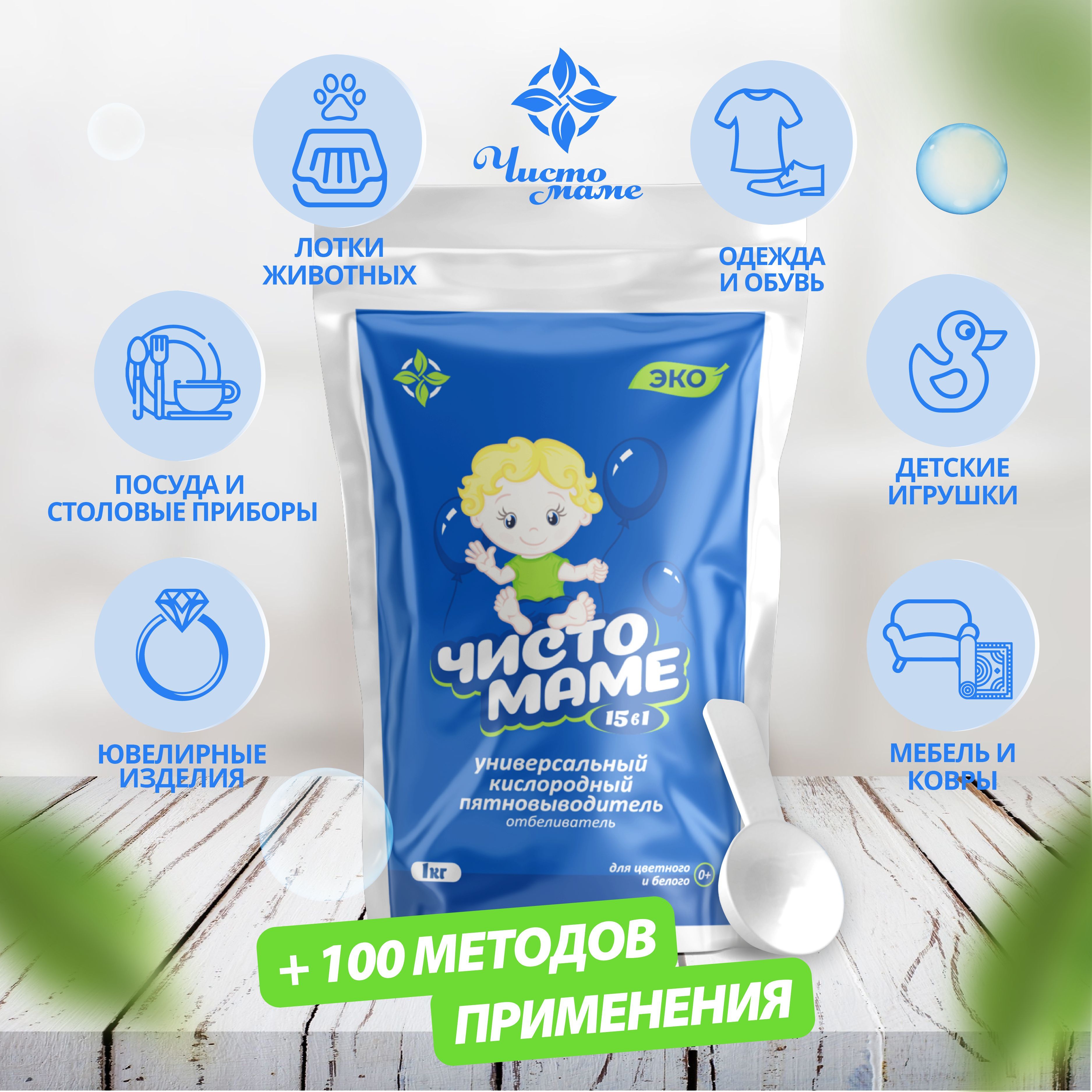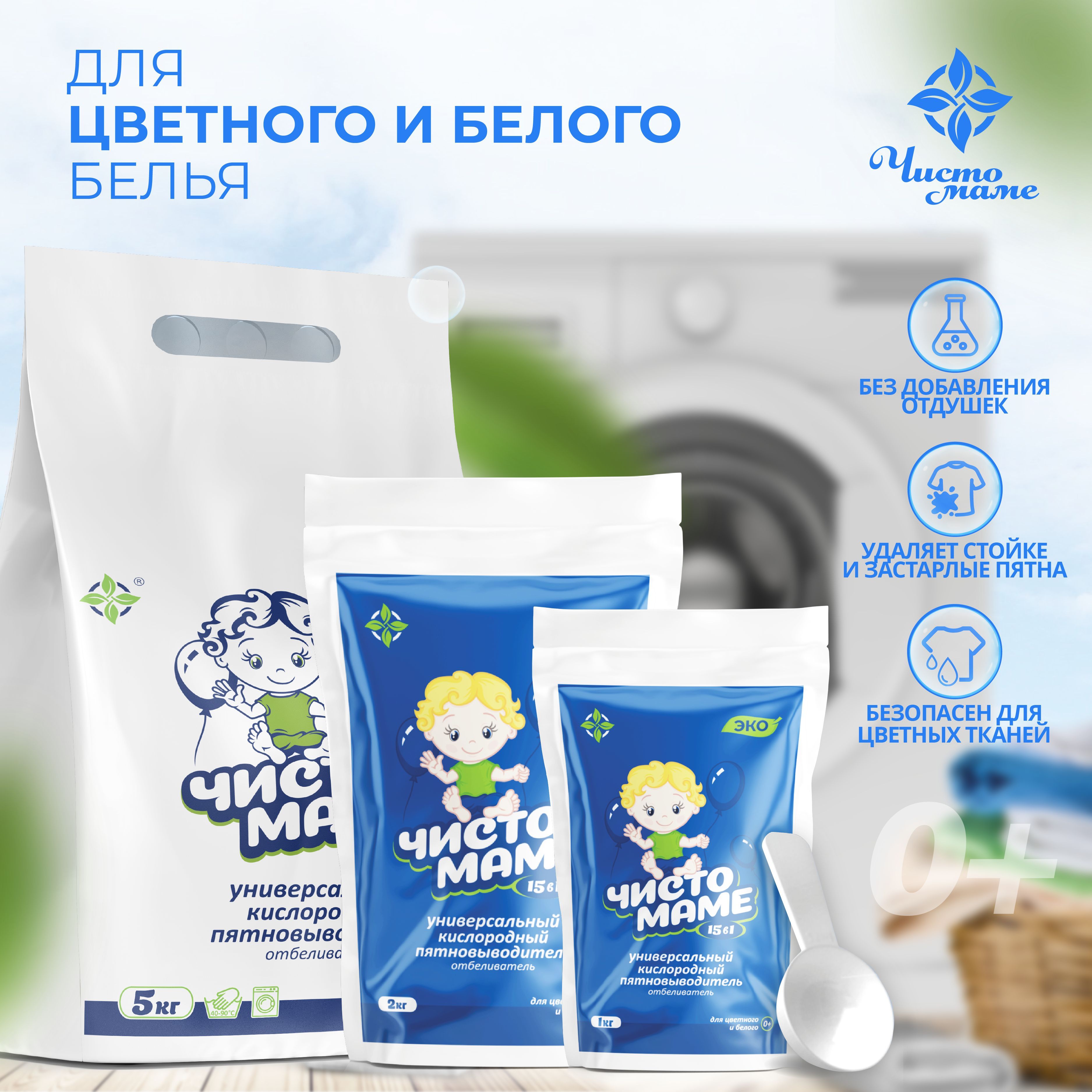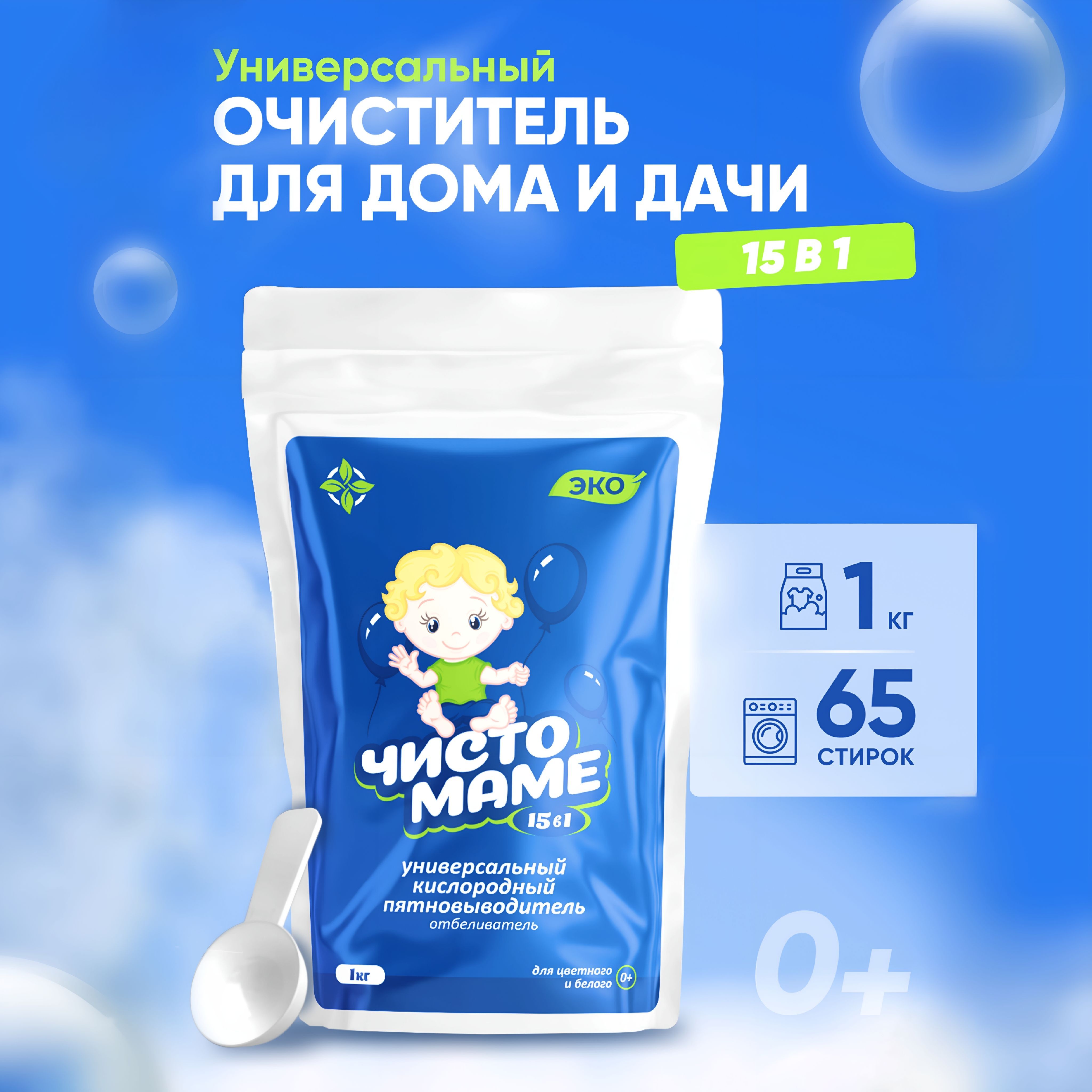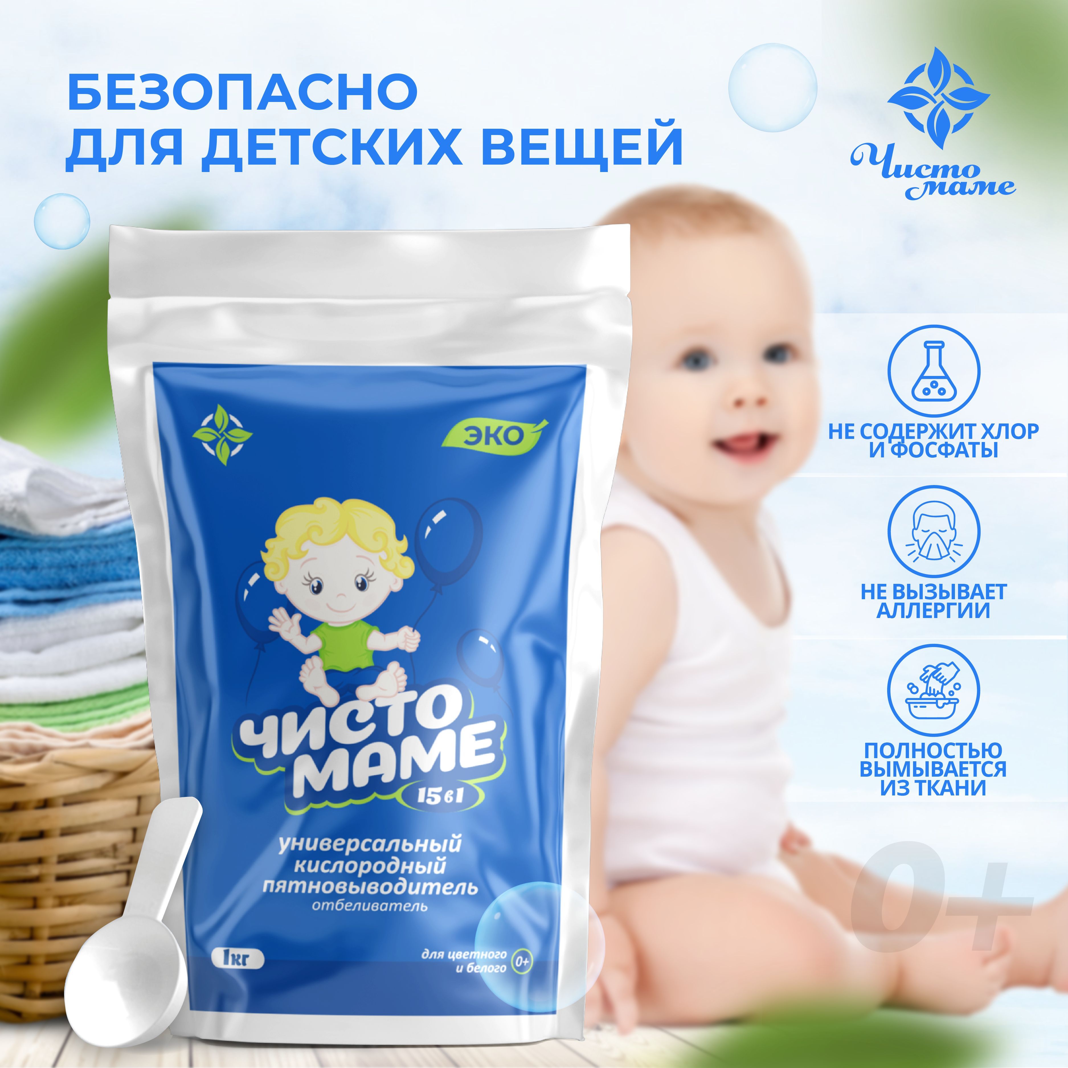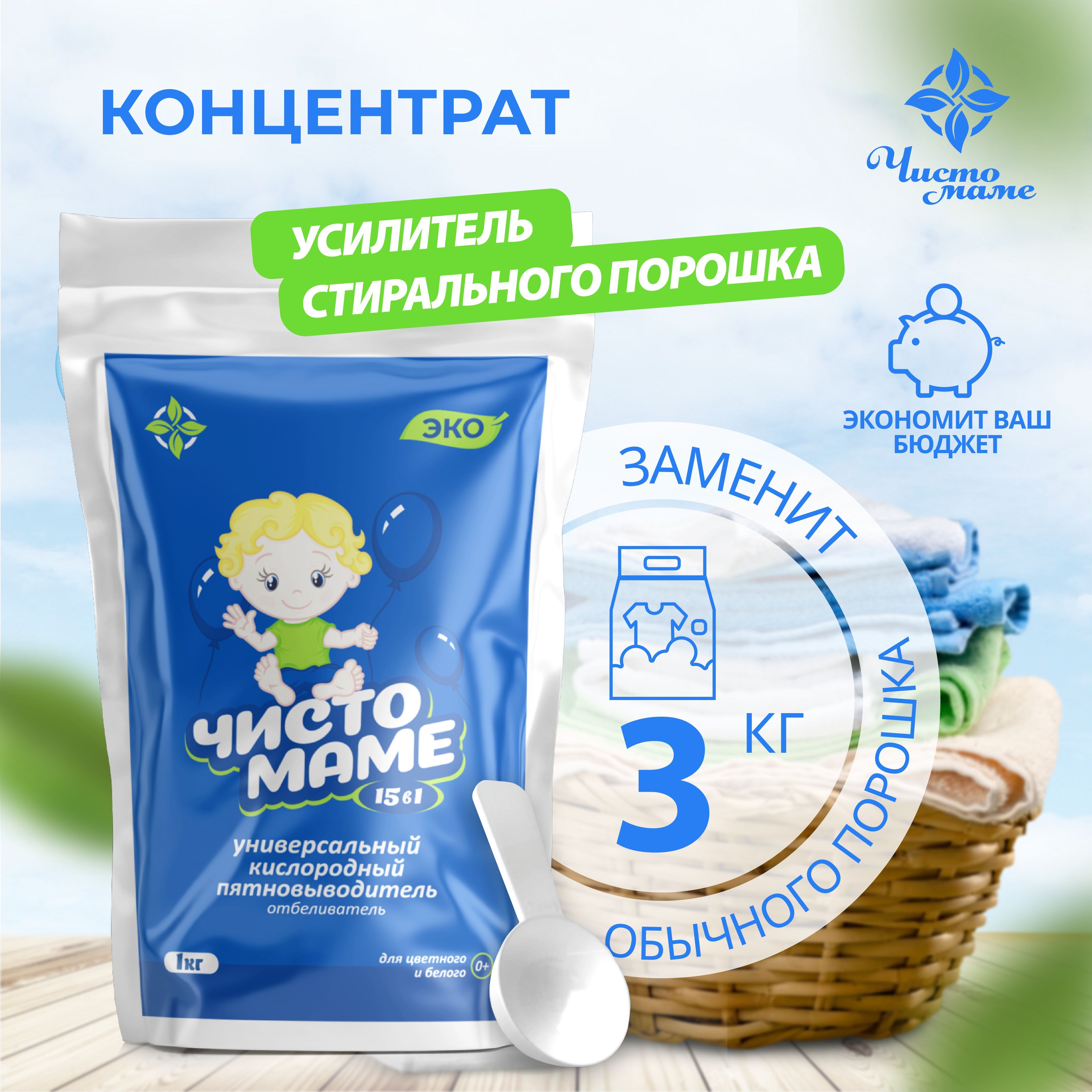 Универсальный кислородный очиститель Чисто маме 1 кг , пятновыводитель для белого и цветного белья , отбеливатель экологичный профессиональный , перкарбонат натрия