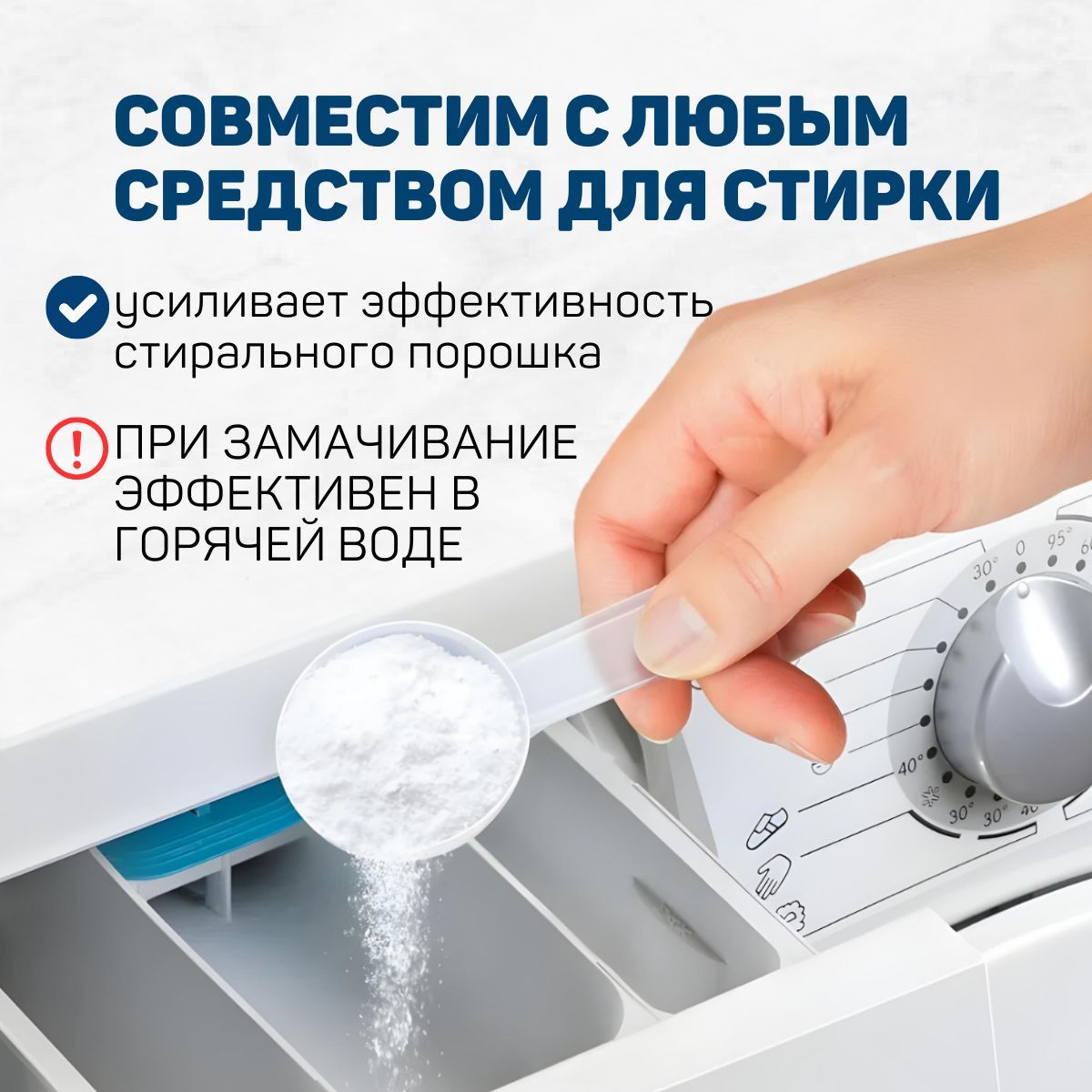 Упаковка с отбелевателем, мерная ложка внутри.