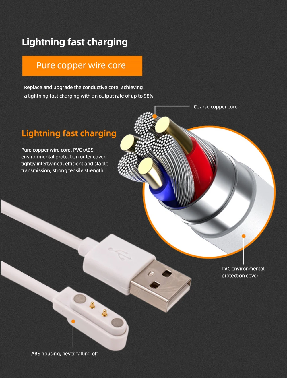 Универсальное зарядное устройство для смарт-часов Магнитный зарядный кабель для детских часов Q12 60 см 2-контактный 4-контактный USB-кабель для зарядки аксессуары