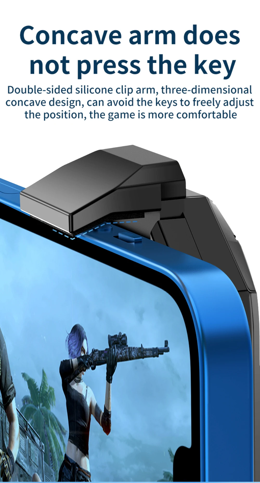 3. Двусторонние силиконовые зажимные рычаги, трехмерный вогнутый дизайн, можно избежать кнопок для свободной регулировки положения, что делает игру более комфортной