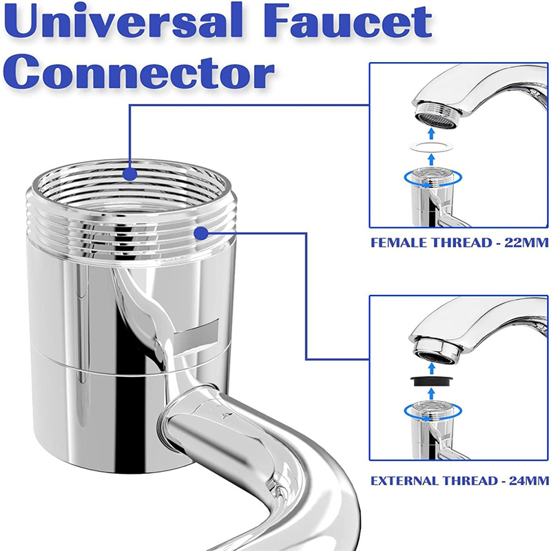 1080 Поворотный кран степени: Удлинитель для раковины позволяет 1080 полностью вращаться, что позволяет легко достигать каждого угла раковины, обеспечивая дополнительное удлинение, позволяющее легко удерживать кран. Легко чистить лицо, волосы и зубы, особенно подходит для детей, пожилых людей и женщин с длинными волосами.