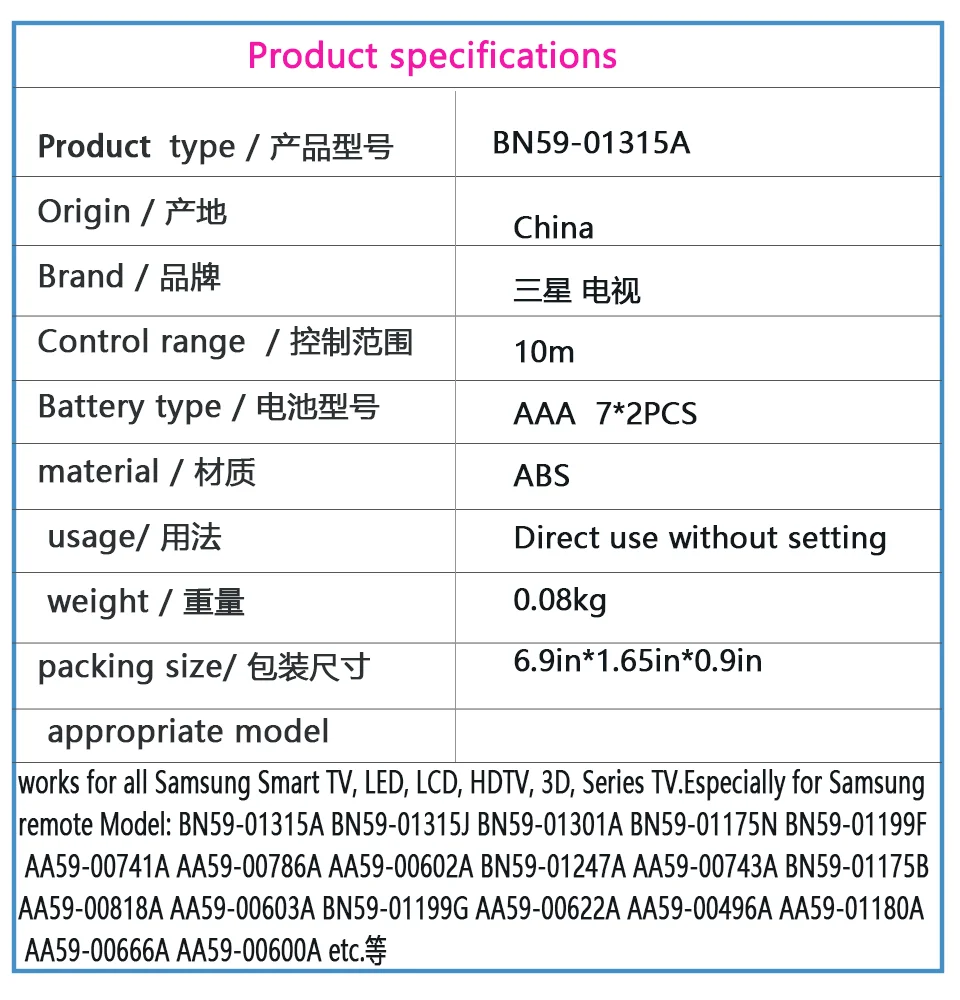 Универсальный пульт дистанционного управления BN59-01315A для всех телевизоров Samsung
