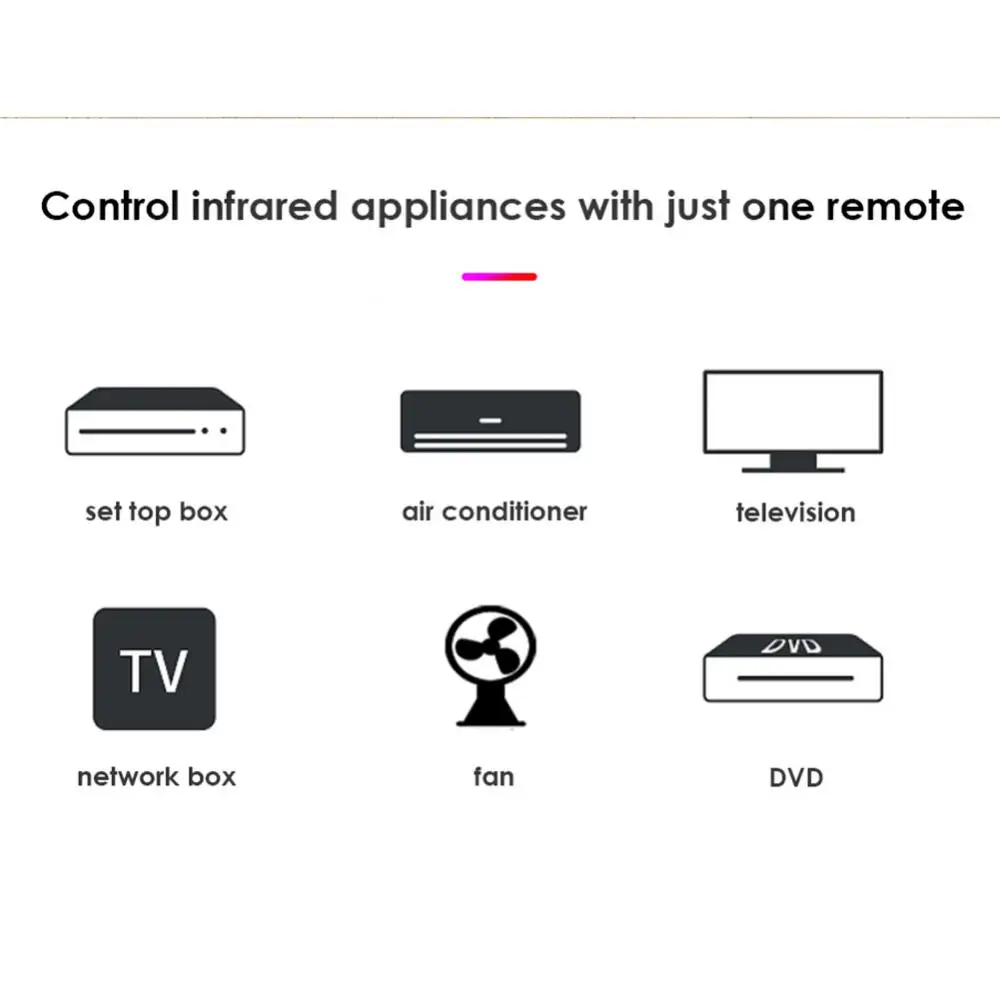 С помощью этого универсального ИК-пульта дистанционного управления вы можете использовать свой смартфон для управления бытовой техникой, такой как STB(Set-Top-Box), TV Box, TV, Кондиционер, Вентилятор, ДВД, ЕТК. Совместимость с большинством брендов, для получения подробной информации см. Список поддерживаемых брендов в приложении. Кроме того, у него есть ФУНКТОН ОБУЧЕНИЯ, позволяющий скопировать ключевую функцию дистанционного управления в приложение.
