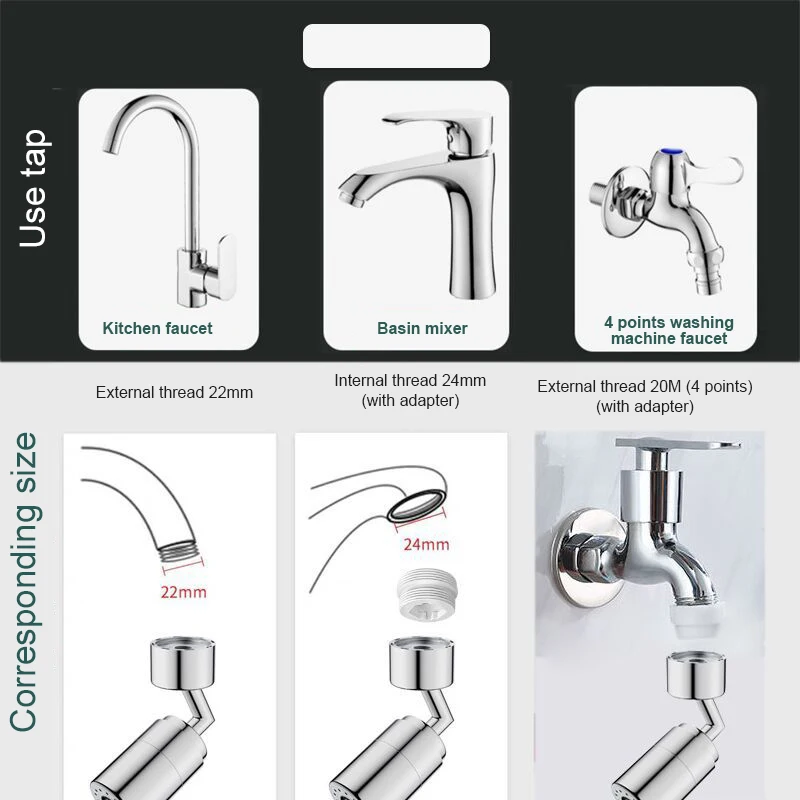 Более удобный: универсальный поворотный рычаг 1080 ° удобен для стирки и может свободно вращаться для мытья лица или умывальника, что более удобно