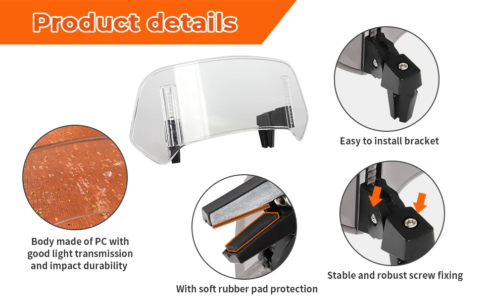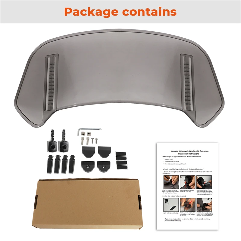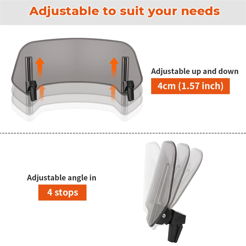 • Это Универсальный ветровик, подходящий практически к любому велосипеду с лобовым стеклом. Фурнитура имеет полностью регулируемый угол для легкой установки.