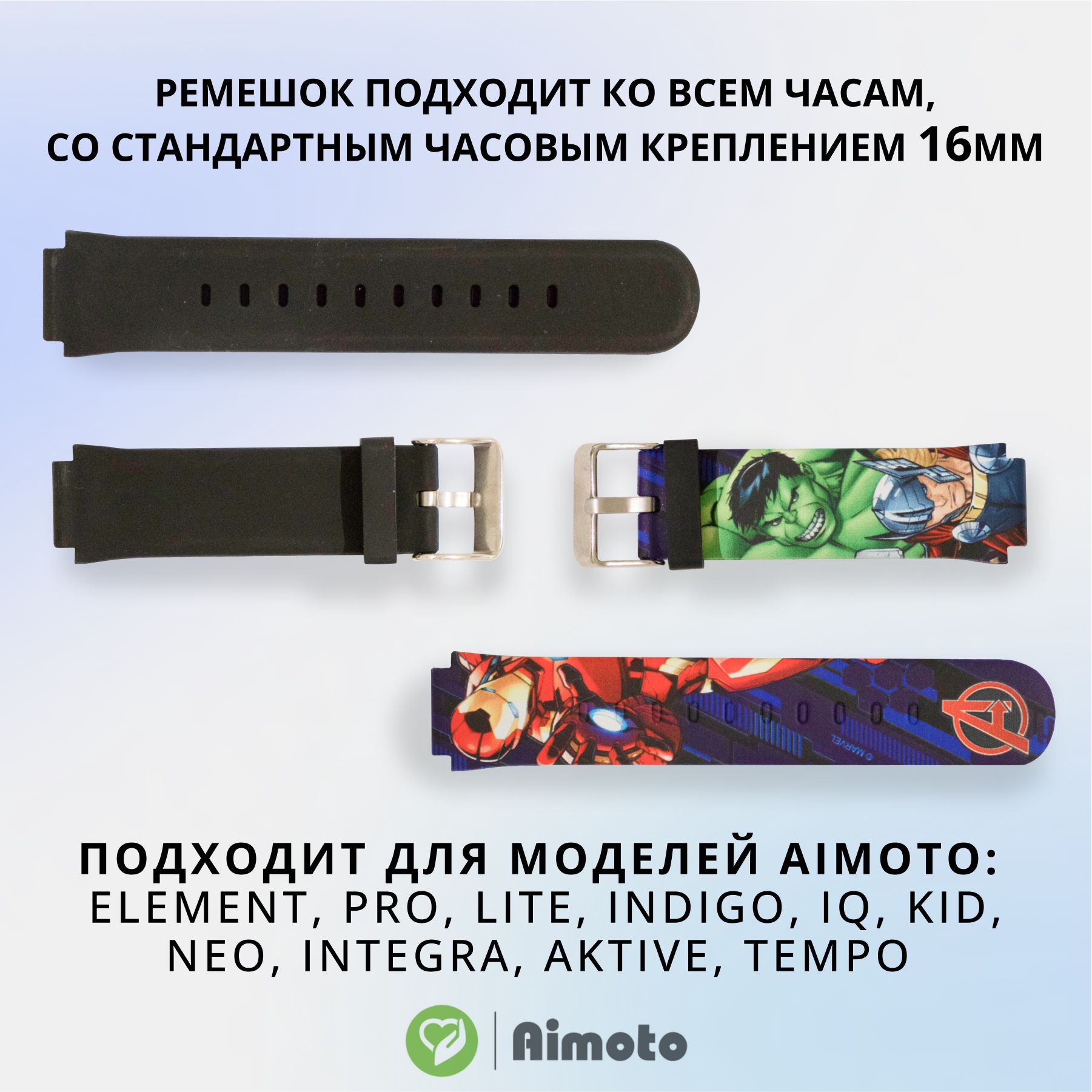 Универсальный ремешок для детских часов 16 мм Aimoto: Element, Kid, Kid Mini, PRO, INDIGO, IQ, Ocean 4G, Ocean V2. Супергерои
