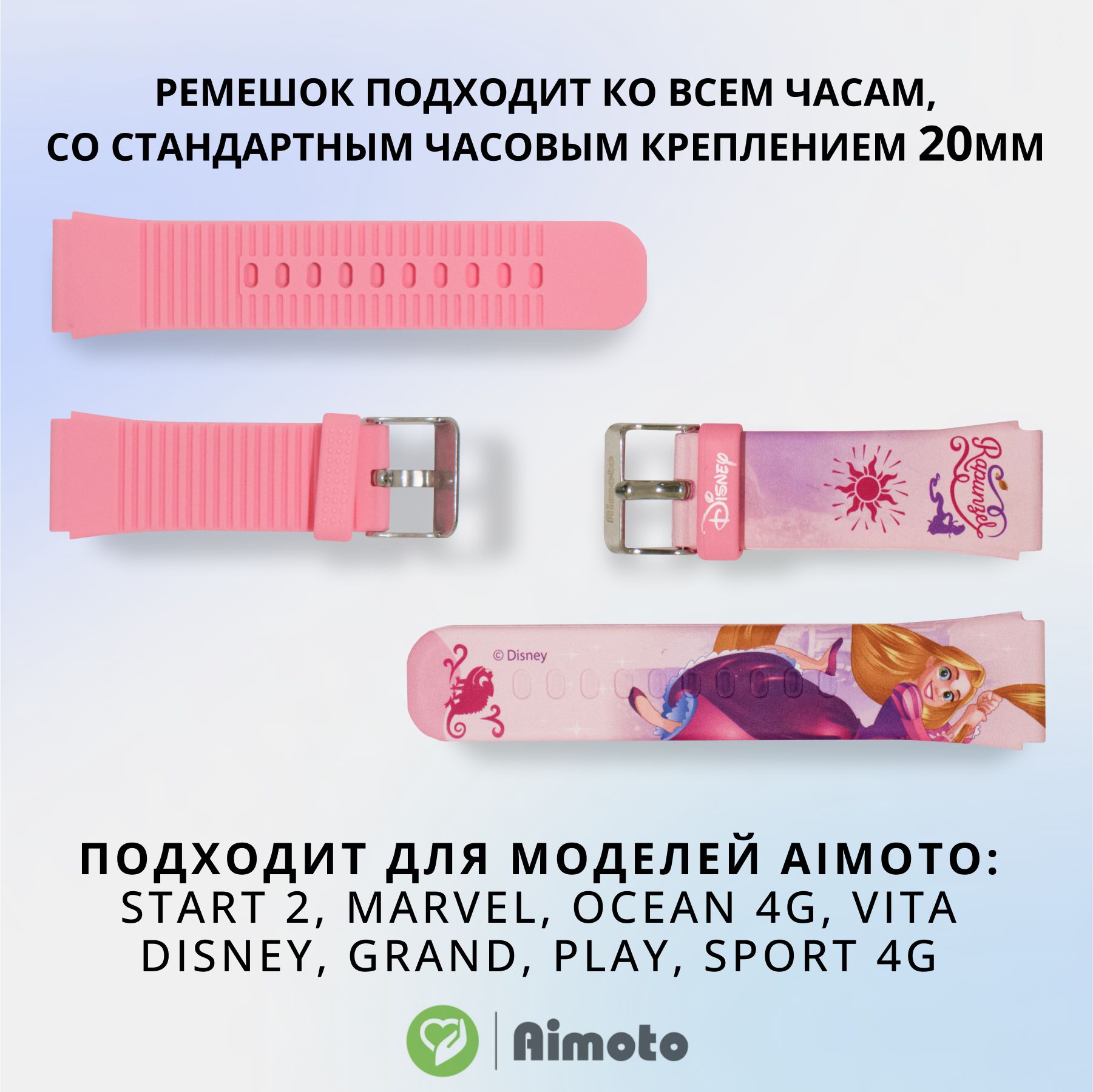 Универсальный ремешок для детских часов 20 мм Aimoto: Start 2, Marvel, Disney. Рапунцель