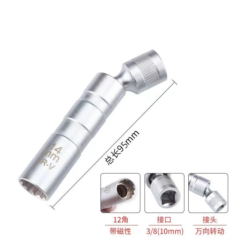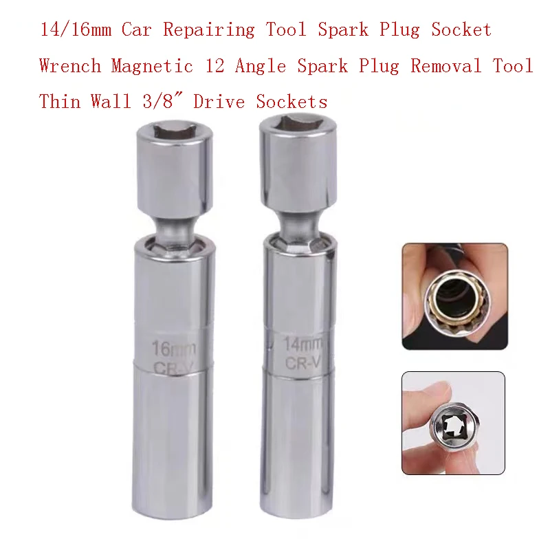 Универсальный шарнир 14/16 мм Поворотный Магнитный тонкостенный инструмент для снятия автомобиля Торцевой ключ для свечи зажигания 3/8 дюйма Привод 6 точек
