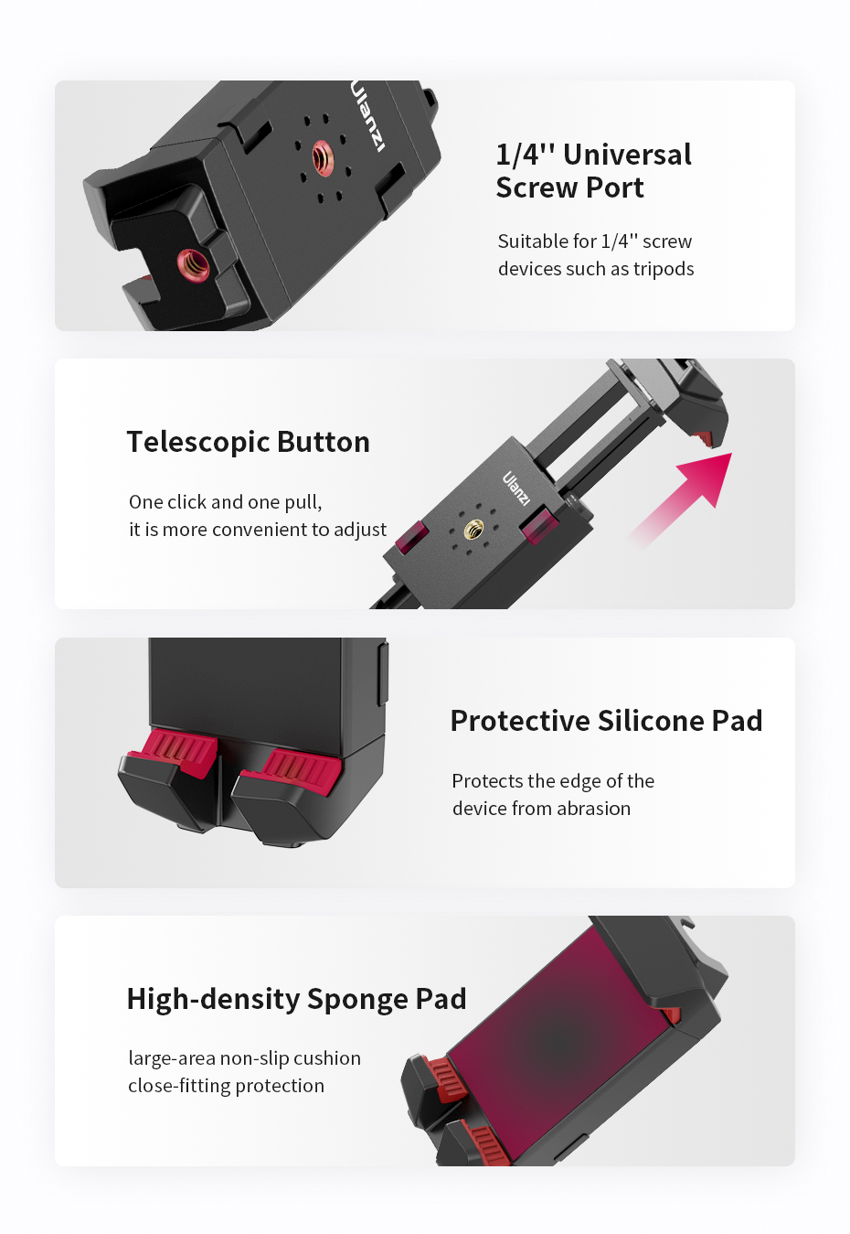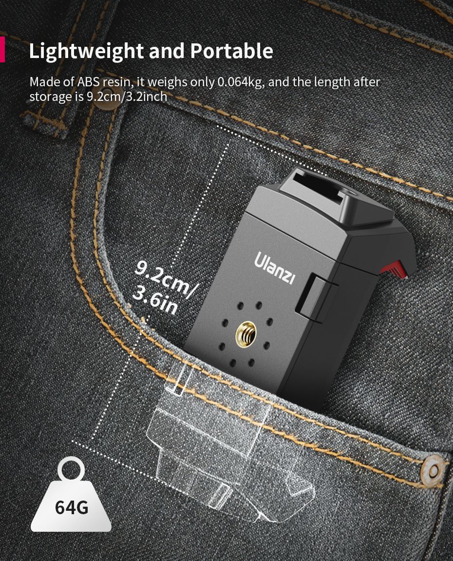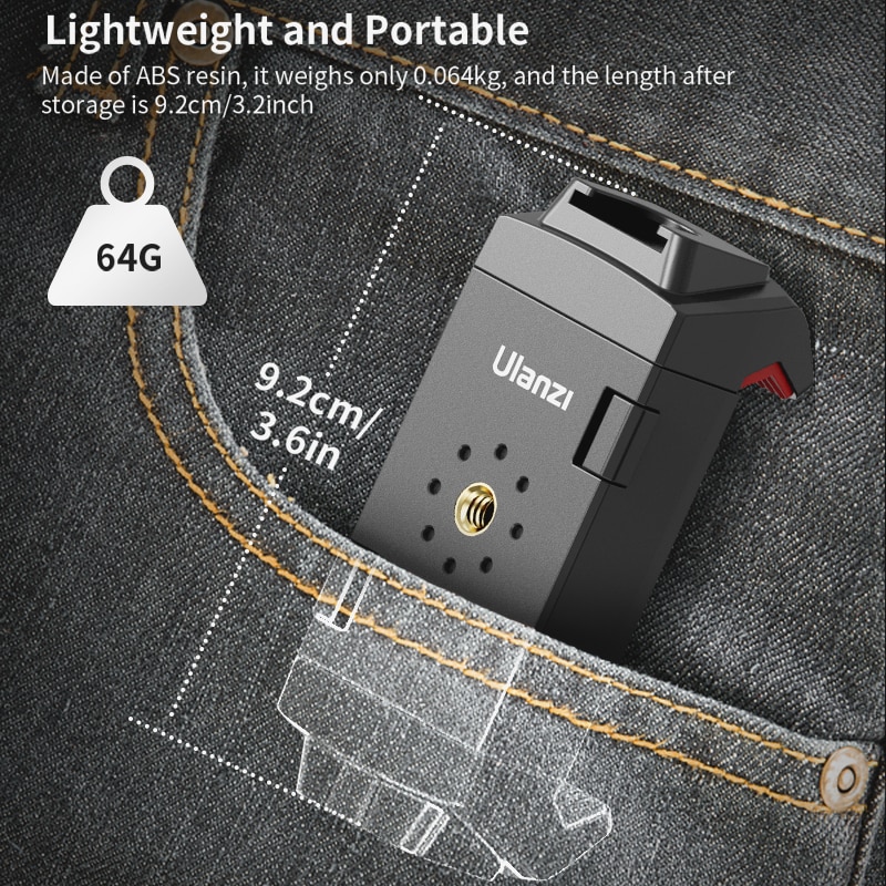 Верхняя часть разработана с интерфейсом для холодного башмака, с возможностью расширения микрофона, заполнения света и другого оборудования.