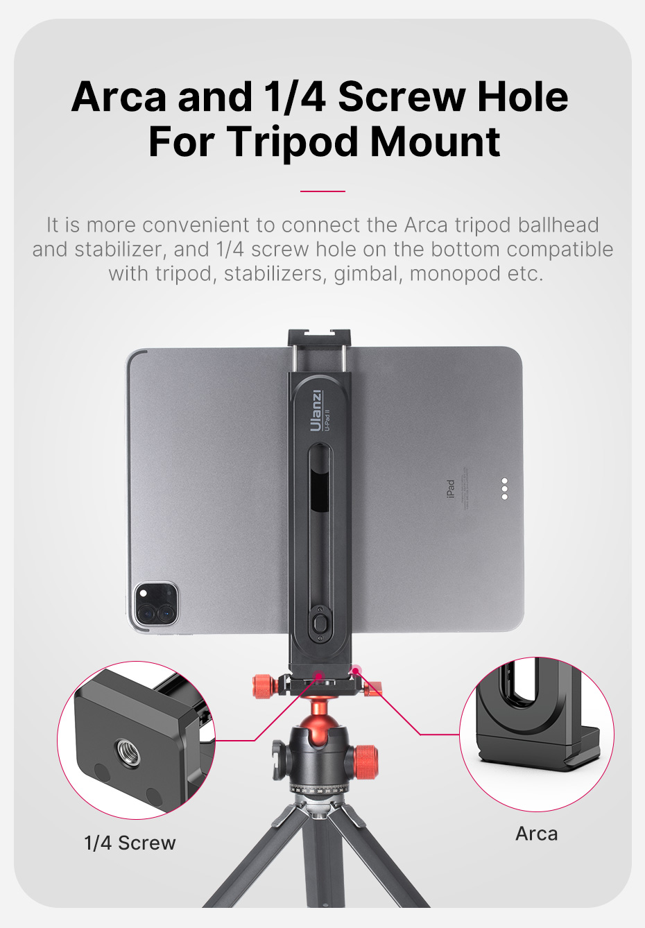Универсальный штатив Ulanzi U-Pad II для планшетов размером 100-230 мм, iPad Air Pro Mini с винтом 1/4 дюйма