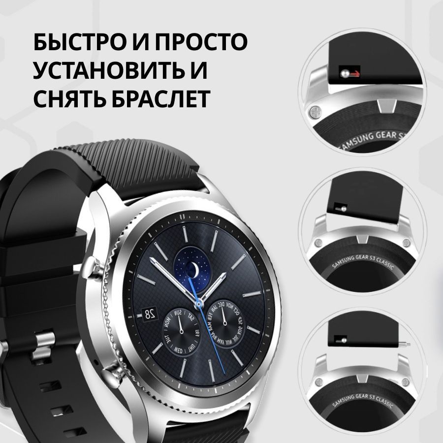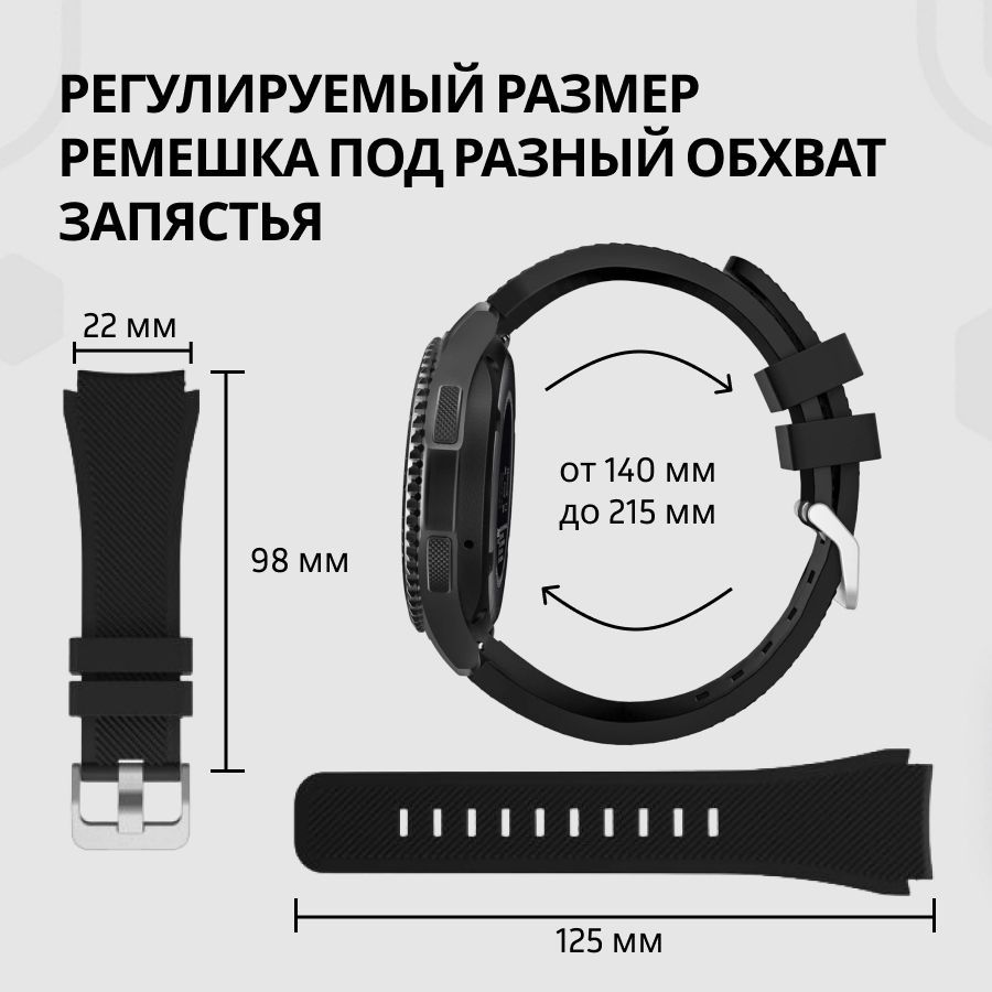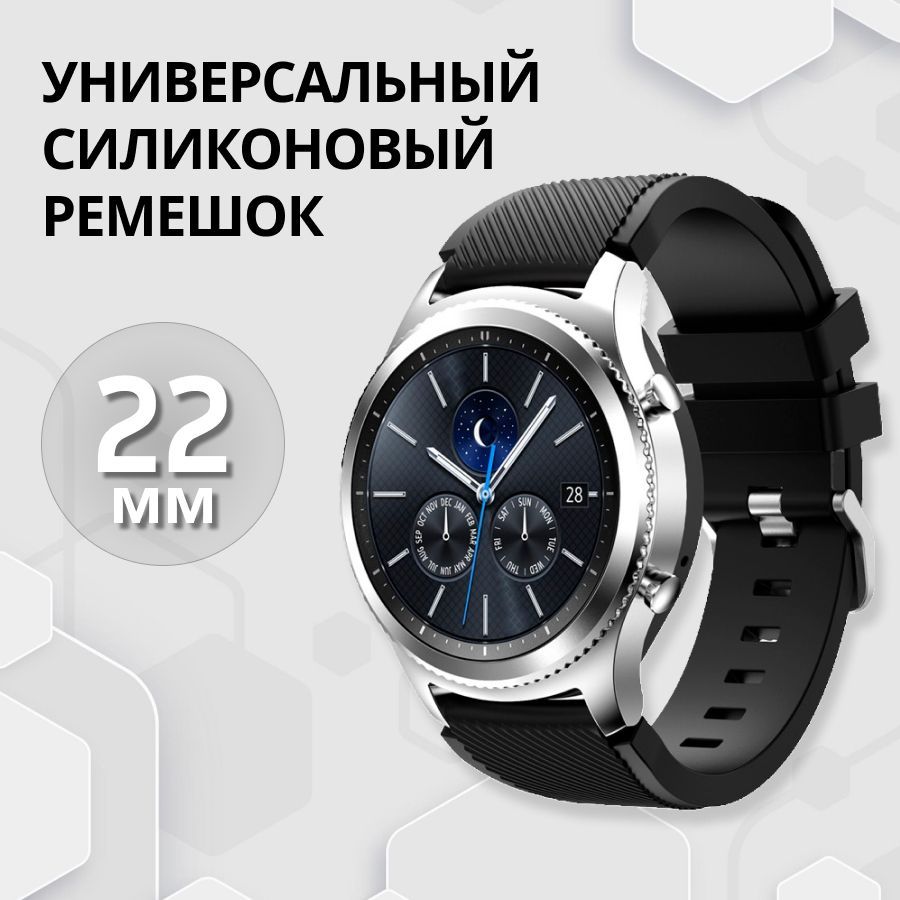 Универсальный силиконовый ремешок для Samsung Gear S3 Frontier, Honor Magic Watch 2 46 mm, Huawei GT 2 46 mm, Amazfit GTR 2, Xiaomi Mi Watch Sport / 22mm, Черный