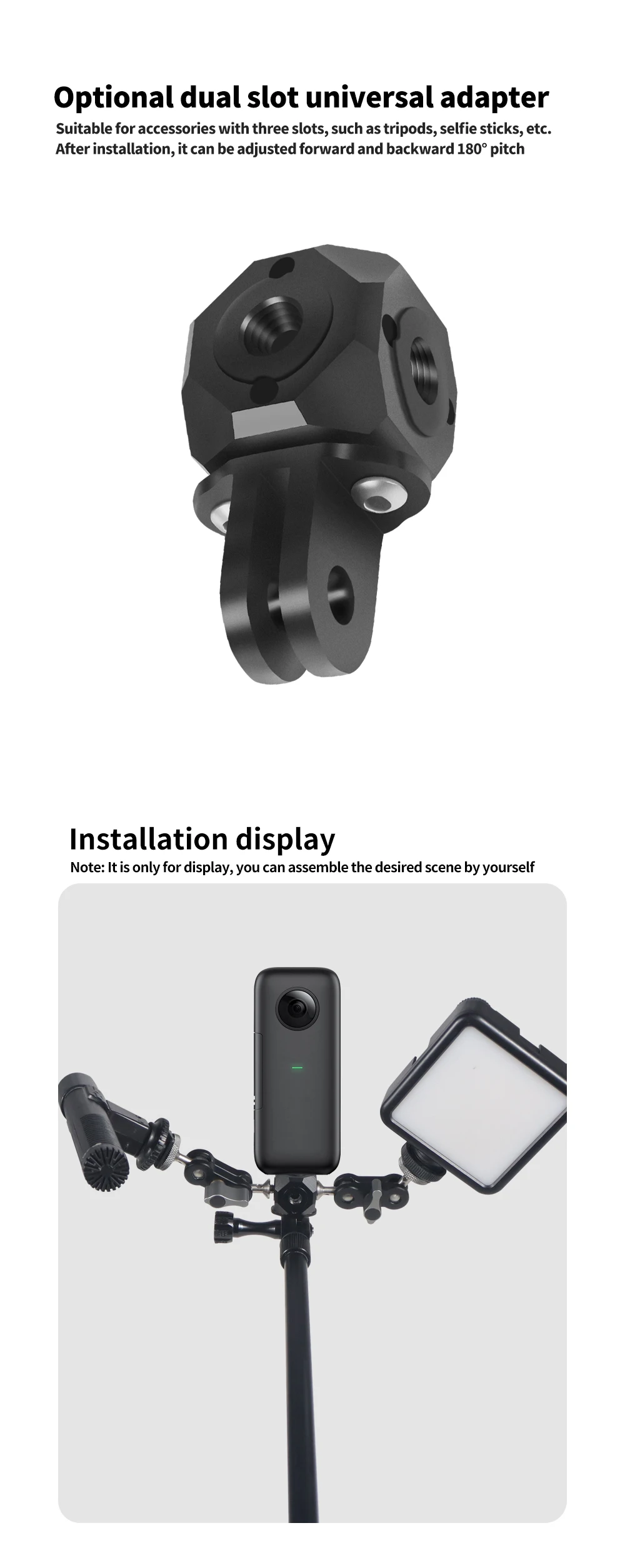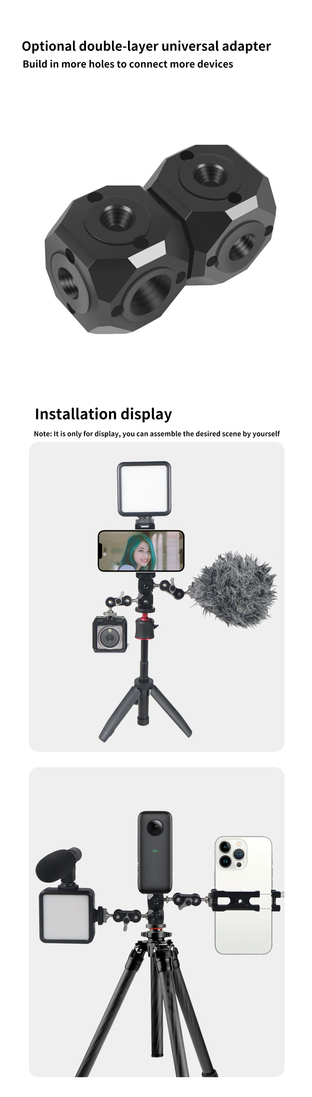 Адаптер с универсальными винтовыми отверстиями 3/8 и 1/4, может использоваться с различными устройствами.