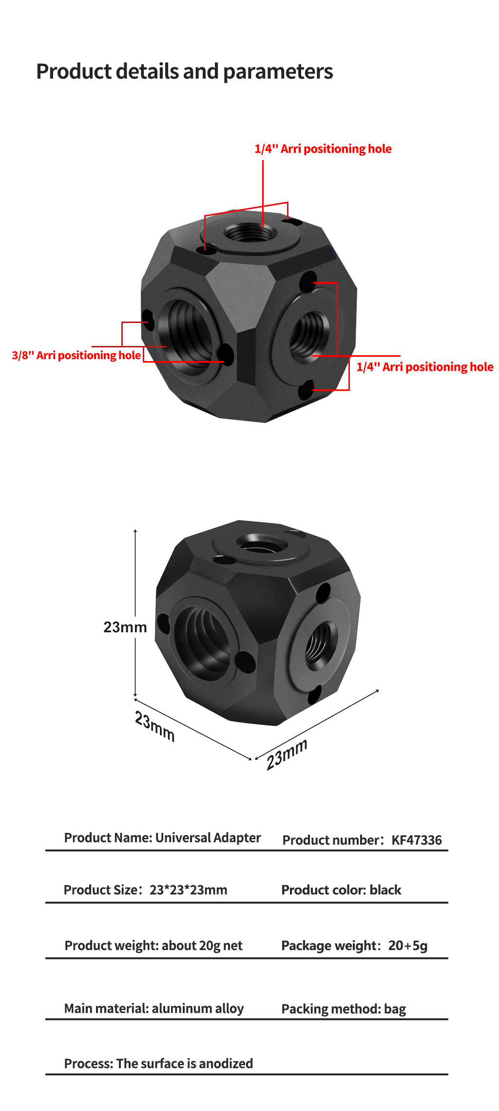 Однослойный или двухслойный адаптер для переноса винтов, он имеет богатое расширение и мощную производительность: Каждая поверхность продукта имеет расширительные винты, с возможностью расширения соответствующих аксессуаров для винтов ARRI;
