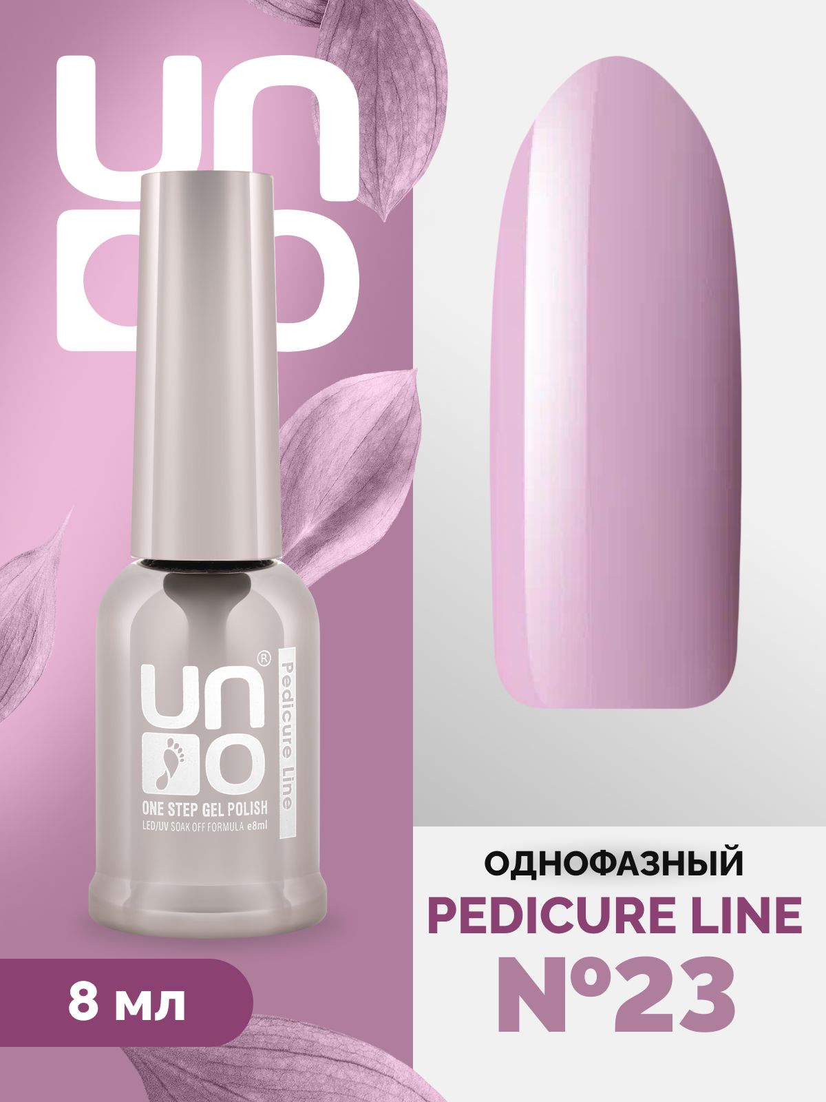 UNO Гель лак для ногтей для педикюра без блесток и перламутра, цветной светлый плотный стойкий однофазный насыщенный самовыравнивающийся приглушенный розовый, 8 мл