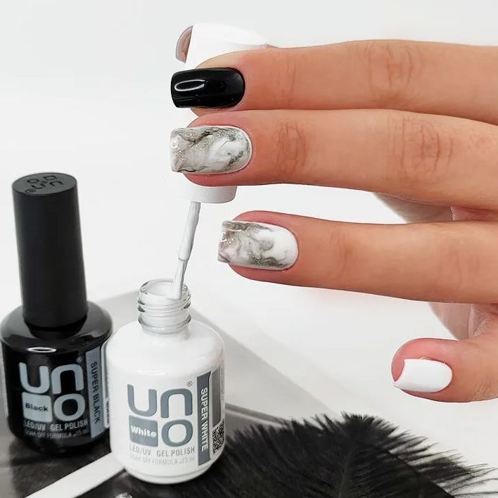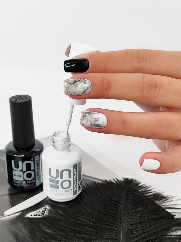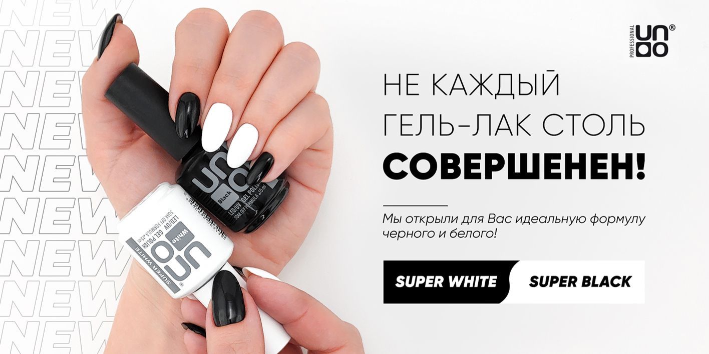 Uno Super Black и Super White – это высокопигментированные оттенки, которые легко наносятся и идеально самовыравниваются.