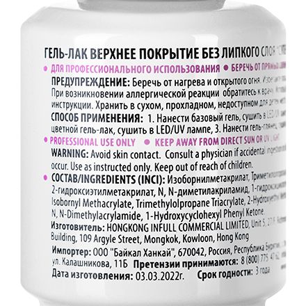 Описание: Глянцевый топ для гель лака без липкого слоя UNO Super Shine. Финишное покрытие закрепляет цвет, создавая дополнительное укрепление для гель лака и сохраняя качество покрытия. Прозрачный топ защищает от выгорания, царапин или сколов. Топовое верхнее покрытие не теряет блеска на протяжении всего времени носки. Даже после нескольких недель ногти выглядят ухоженными. Благодаря средне вязкой консистенции (ближе к жидкой), самовыравнивающийся закрепитель для ногтей наносится в один тонкий слой. Завершающее покрытие для гель лака гарантирует зеркальный блеск без желтизны. Финиш подходит как для маникюра, так и для педикюра. Покрытие для ногтей имеет удобную кисть, которая поможет аккуратно распределить материал. Нажмите на логотип продавца, чтобы приобрести все для маникюра и педикюра. Ознакомьтесь с другими товарами для красоты и здоровья, с помощью которых вы сможете собрать полезный и оригинальный подарок для nail мастера, любимой жены, сестры, дочки и коллеги. Профессиональные высококачественные средства, материалы и принадлежности нашего бренда предназначены для салона красоты и работы на дому. В нашем магазине вы приобретете только оригинал! Перед покупкой убедитесь, что в графе "ПРОДАВЕЦ" указан магазин KrasotkaPro, ведь мы - ЕДИНСТВЕННЫЙ ОФИЦИАЛЬНЫЙ ПРЕДСТАВИТЕЛЬ бренда UNO (уно) на Ozon! Чтобы проверить приобретенный товар на подлинность, воспользуйтесь инструкцией в карусели с фотографиями. Остерегайтесь подделок!