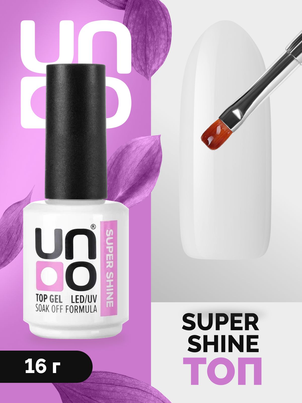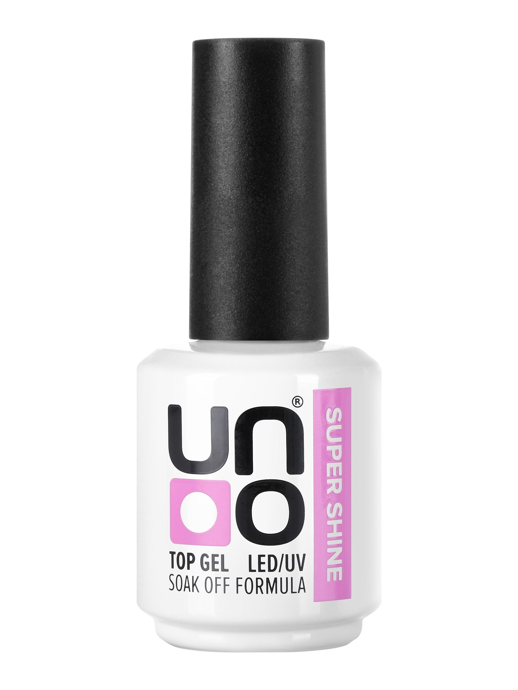 UNO Топ для гель лака "Super Shine" финиш глянцевый без липкого слоя, верхнее завершающее покрытие для ногтей, закрепитель для маникюра и педикюра, без желтизны, прозрачный, 16 г