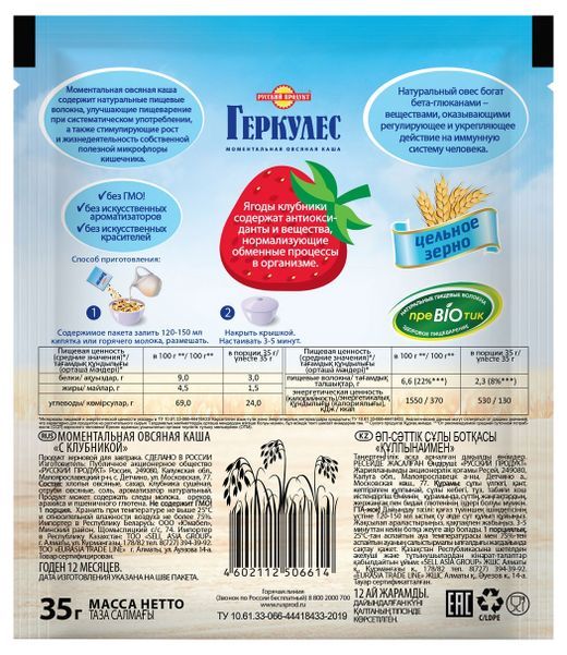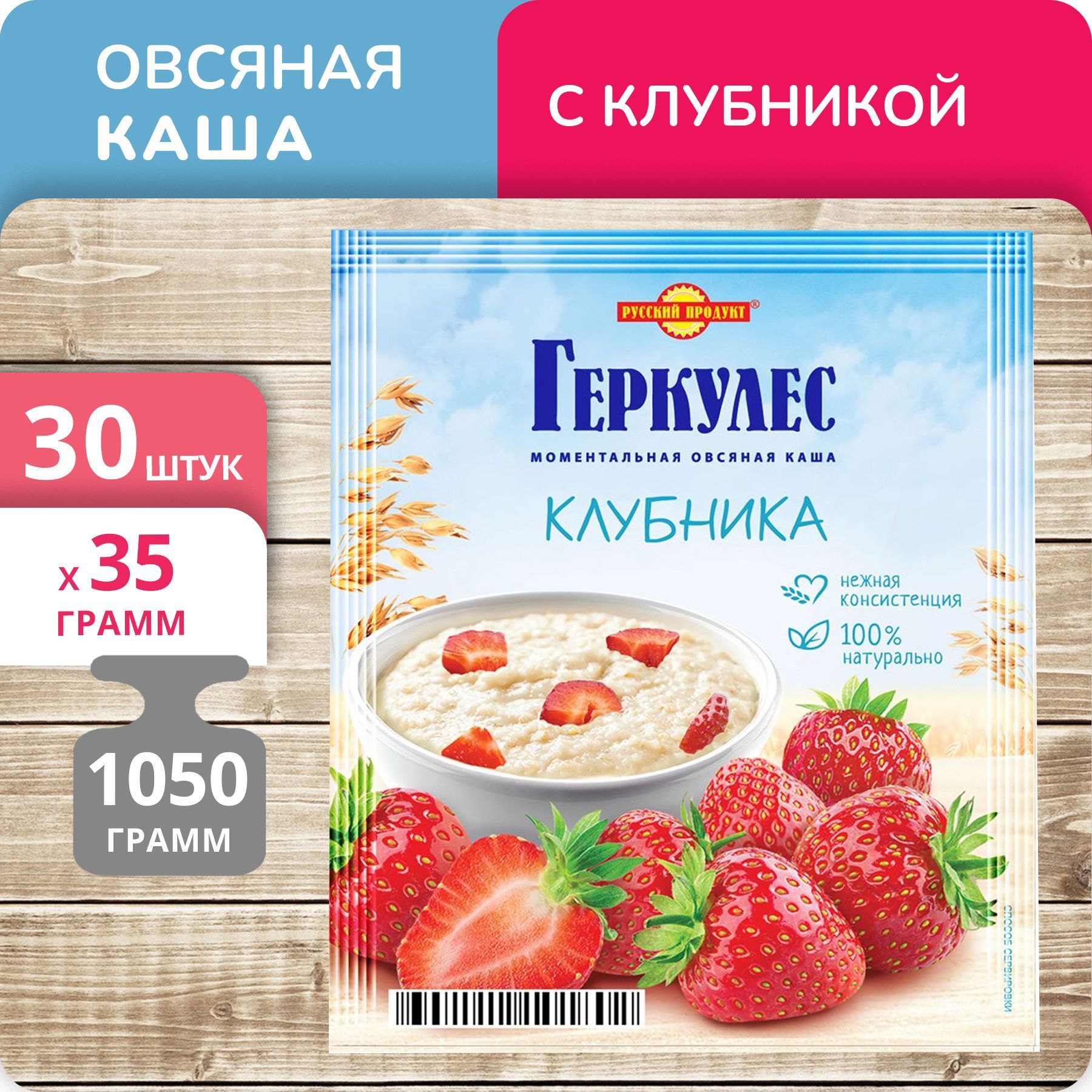 Упаковка 30 штук Каша Геркулес Овсяная с клубникой моментальная 35г