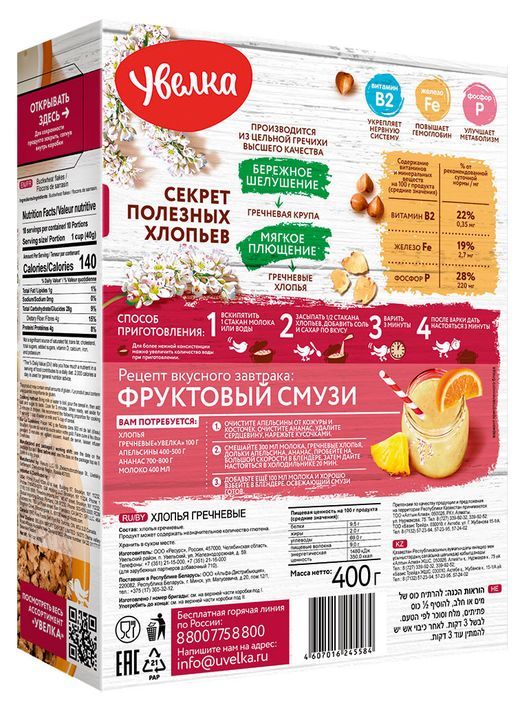 Соблюдая весь процесс производства (зерна гречихи расплющивают, предварительно разрезав их), сохраняются все полезные вещества и витамины.