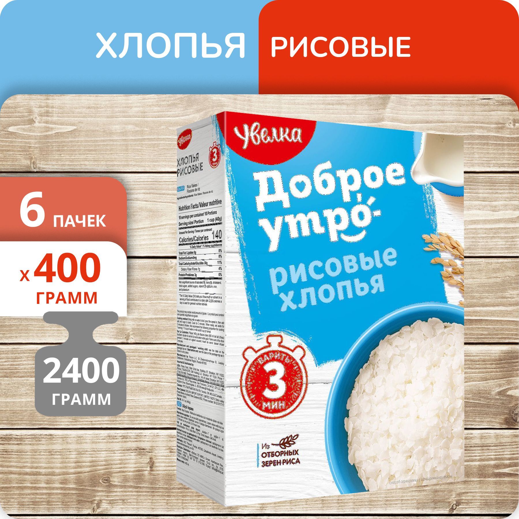 Упаковка 6 пачек Хлопья Увелка рисовые (3 мин) 400г