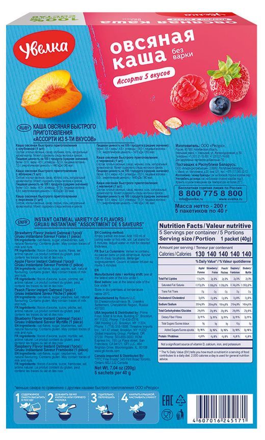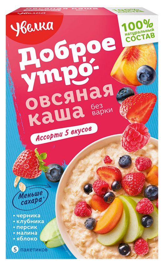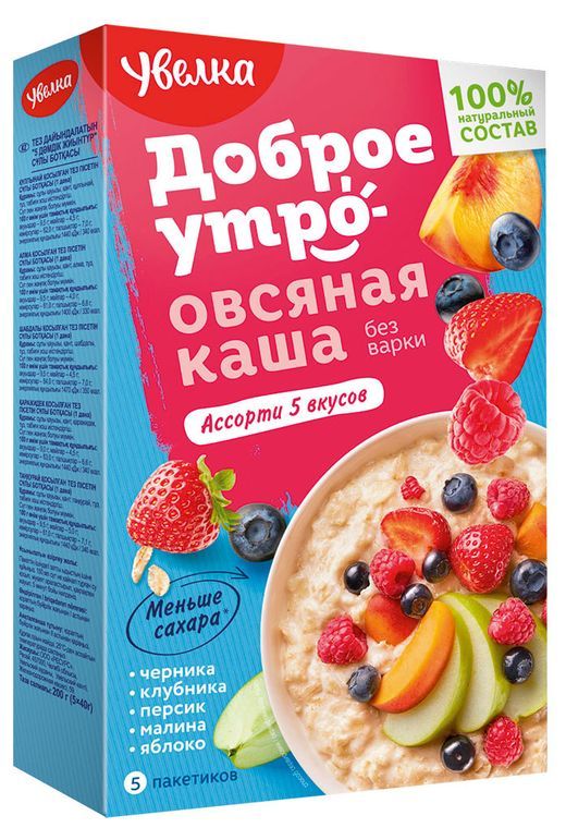 Каша овсяная УВЕЛКА ассорти 5 вкусов – это сочетание пользы овсянки и фруктов.