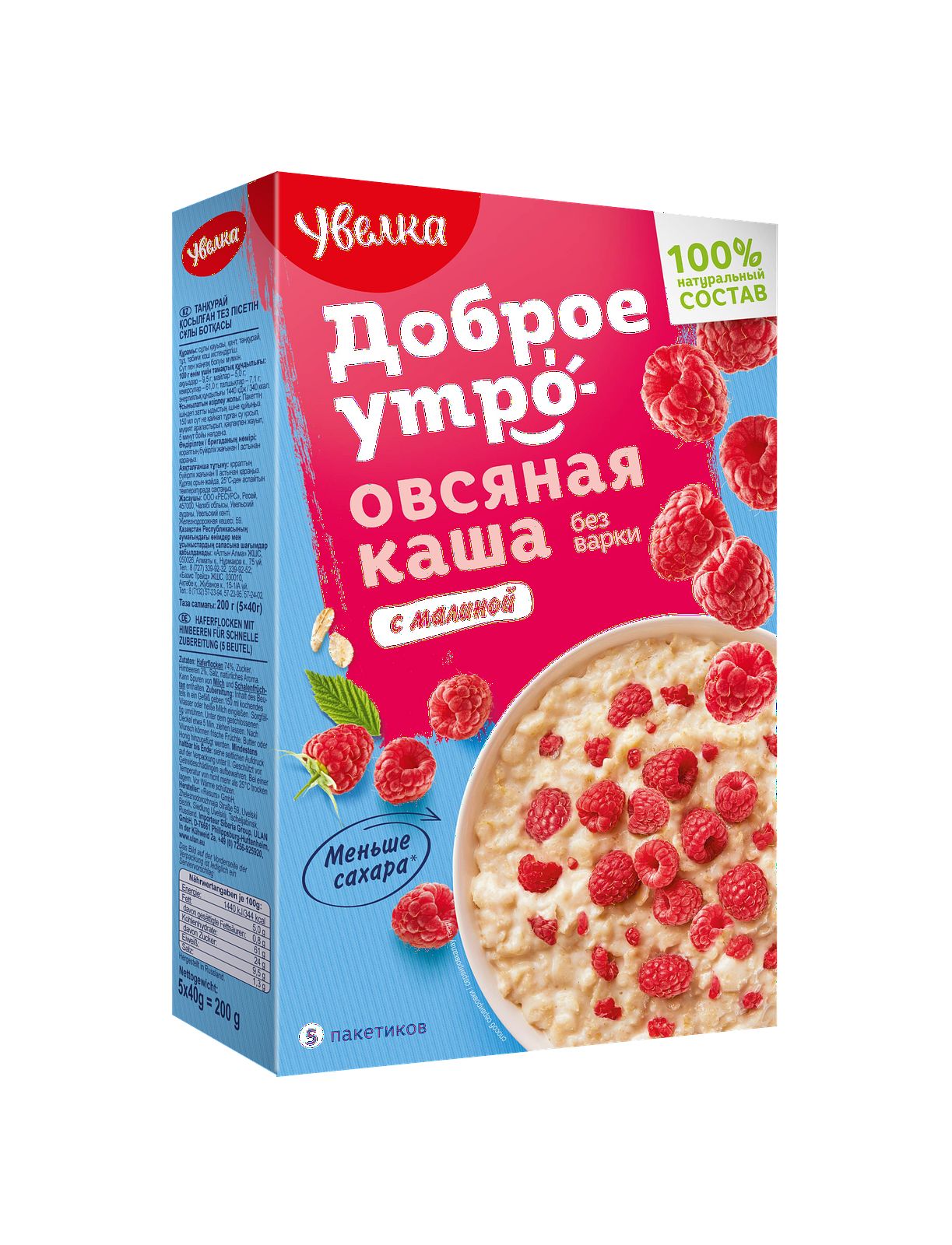 Упаковка 6 пачек Каша Увелка Овсяная малина 200г (5 х 40г)(30 пакетиков)