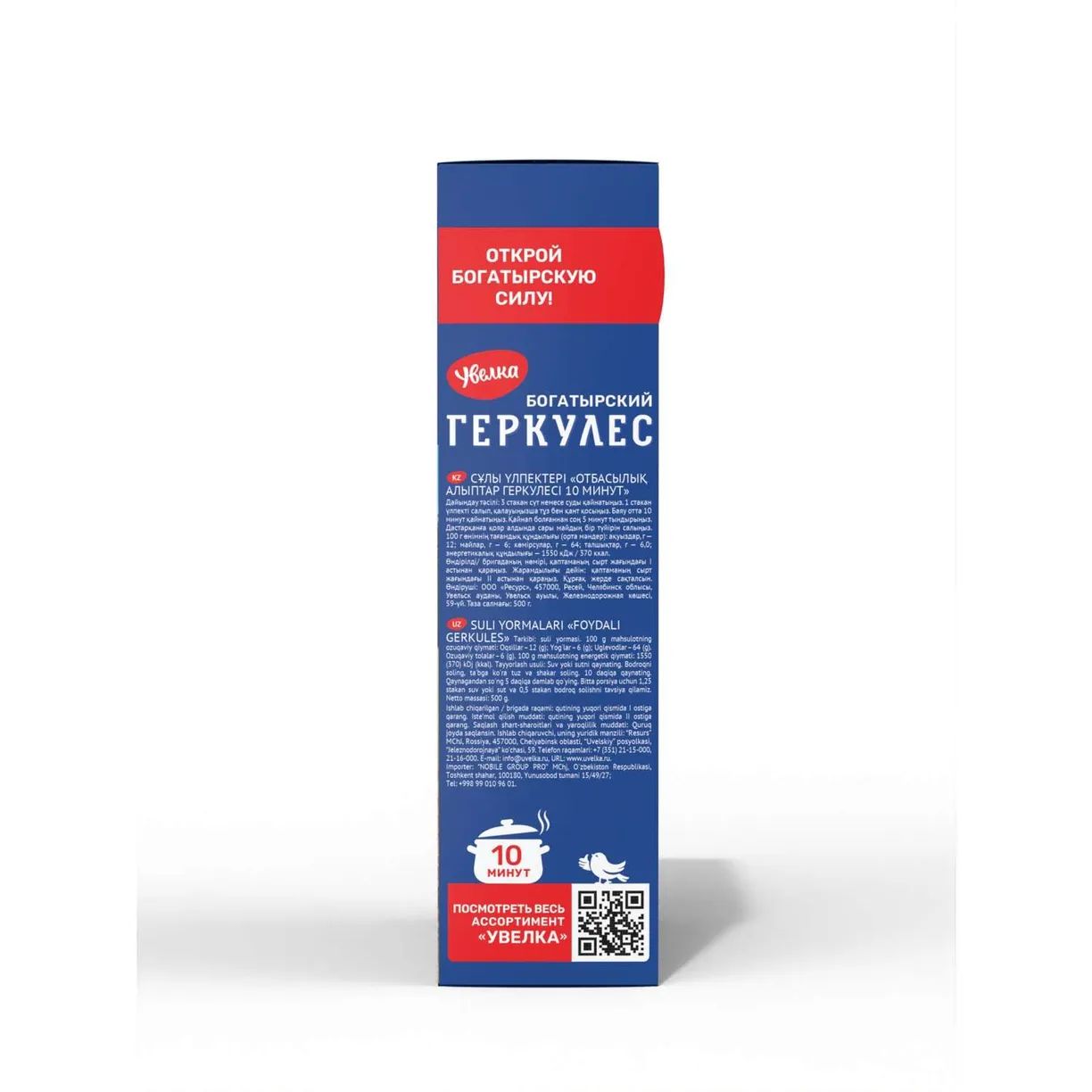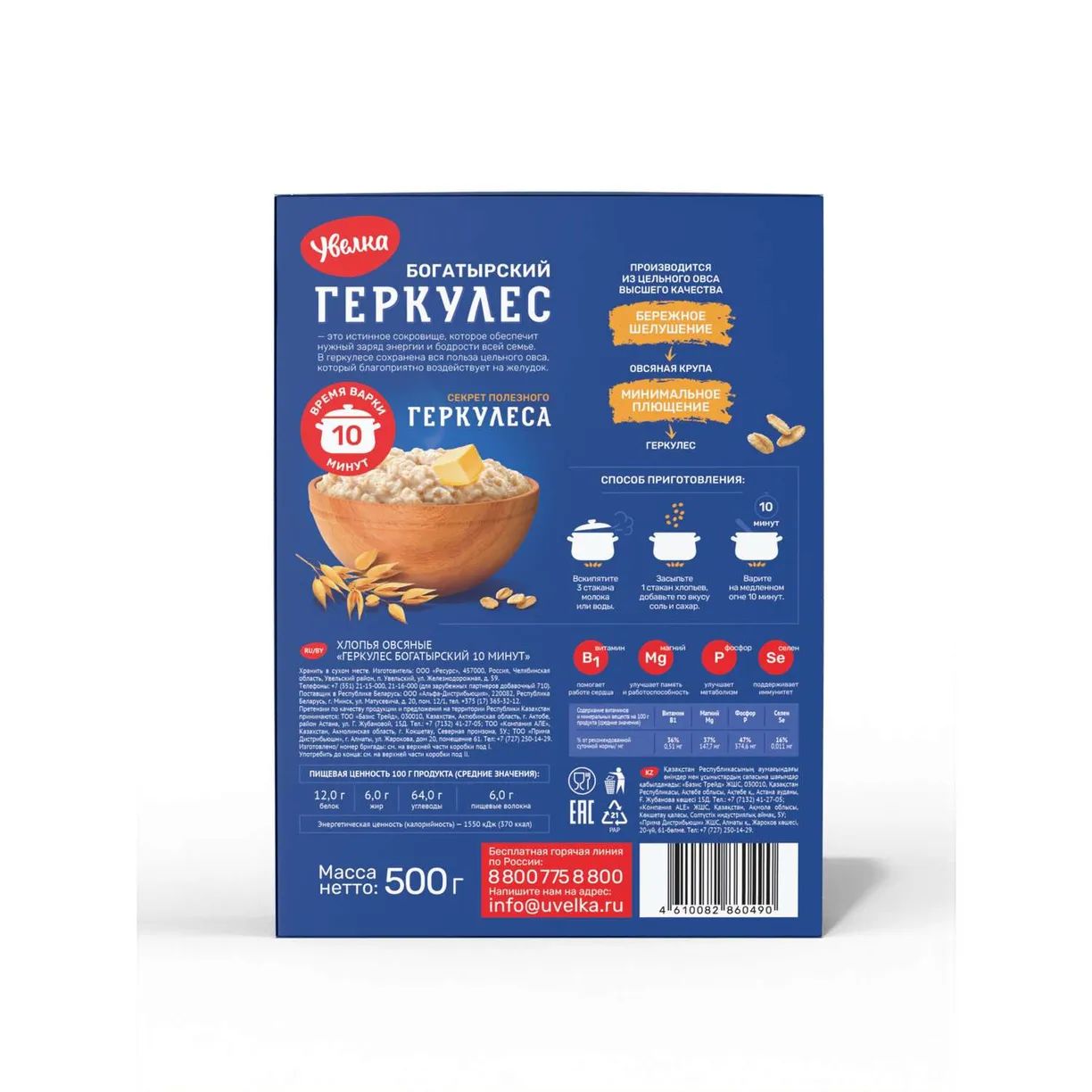Упаковка из 6 пачек Хлопья Увелка овсяные Геркулес Богатырский (10 мин) 500г