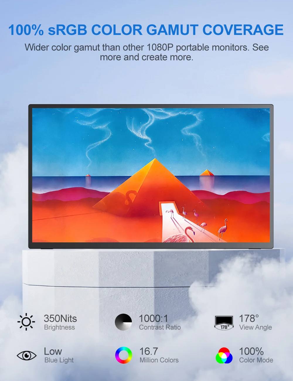 Компьютерный монитор 1080P со 100% sRGB имеет 16,7 млн (8 бит) цветов, что позволяет вам летать в мире цветов, ощущать визуальное воздействие, создаваемое цветами, и восстанавливать самый реальный цветовой мир.