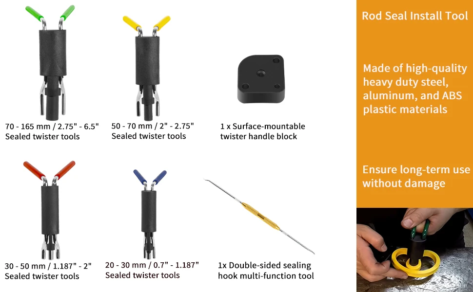 Уплотнители, инструменты для установки, уплотнение поршневого штока гидравлического цилиндра, U-образный Twistor, набор для установки, уплотнение 0,7-6,5 Дюймов