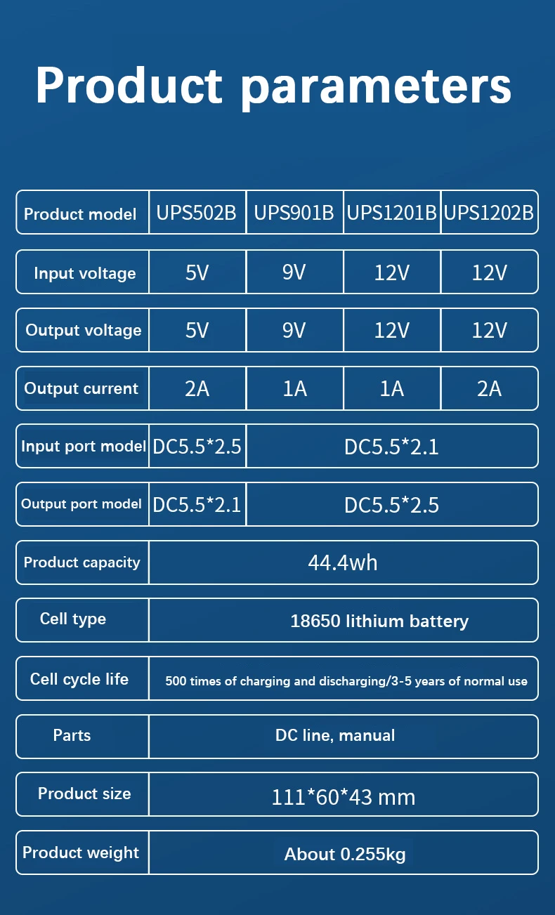 Маленькие ИБП-это альтернативный источник питания для хранения энергии. Надежная безопасность литиевой батареи печатной платы и защита окружающей среды, Чит-ток/постоянный ток/постоянное напряжение зарядки литиевой батареи BMS создается за счет высокой производительности DC-DC высокой эффективности, перенапряжения и автоматического выключателя. Небольшой ИБП имеет идеальные функции разрядки заряда и защиты от перегрузки по току, которые могут предотвратить короткое замыкание.