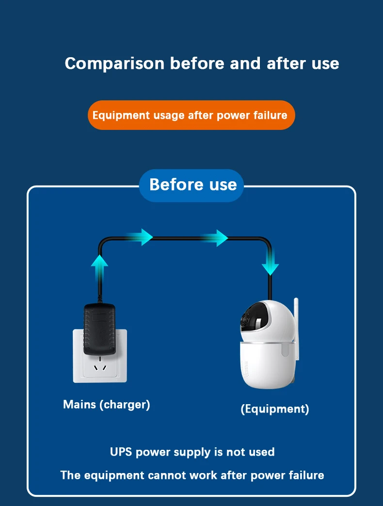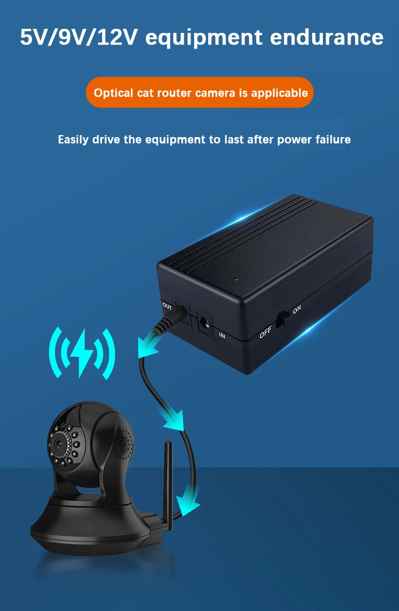 UPS источник питания для камеры наблюдения 12 В 2 А, срок службы батареи, аварийный мобильный литиевый аккумулятор, оптический cat