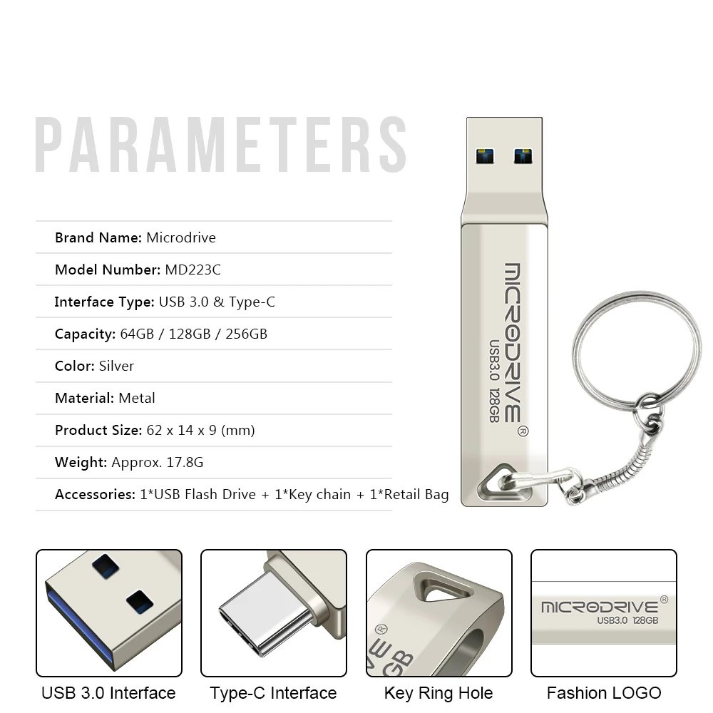 Usb 3.0 флеш-накопитель Type-C, 64 ГБ, 128 ГБ, 256 ГБ